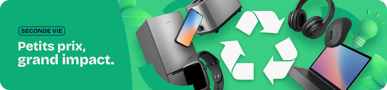 Parfaitement fonctionnels, ces produits reconditionnés par nos partenaires de confiance n’attendent que vous pour commencer leur seconde vie ! Moins chers que les neufs, ils sont garantis 12 mois minimum et seront automatiquement réparés ou remplacés en cas de problème !