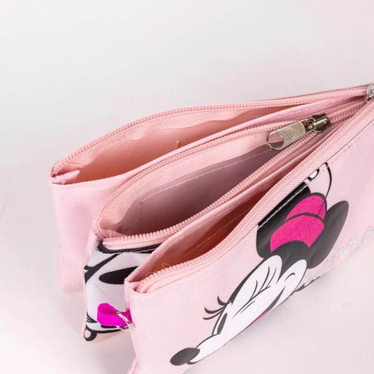 Trousse 3 compartiments DISNEY MINNIE en 83% Polyester / 17% Polyuréthane, finitions haut de gamme, d'une dimension de 220X115X30mm, le cadeau idéal pour toutes les occasions.