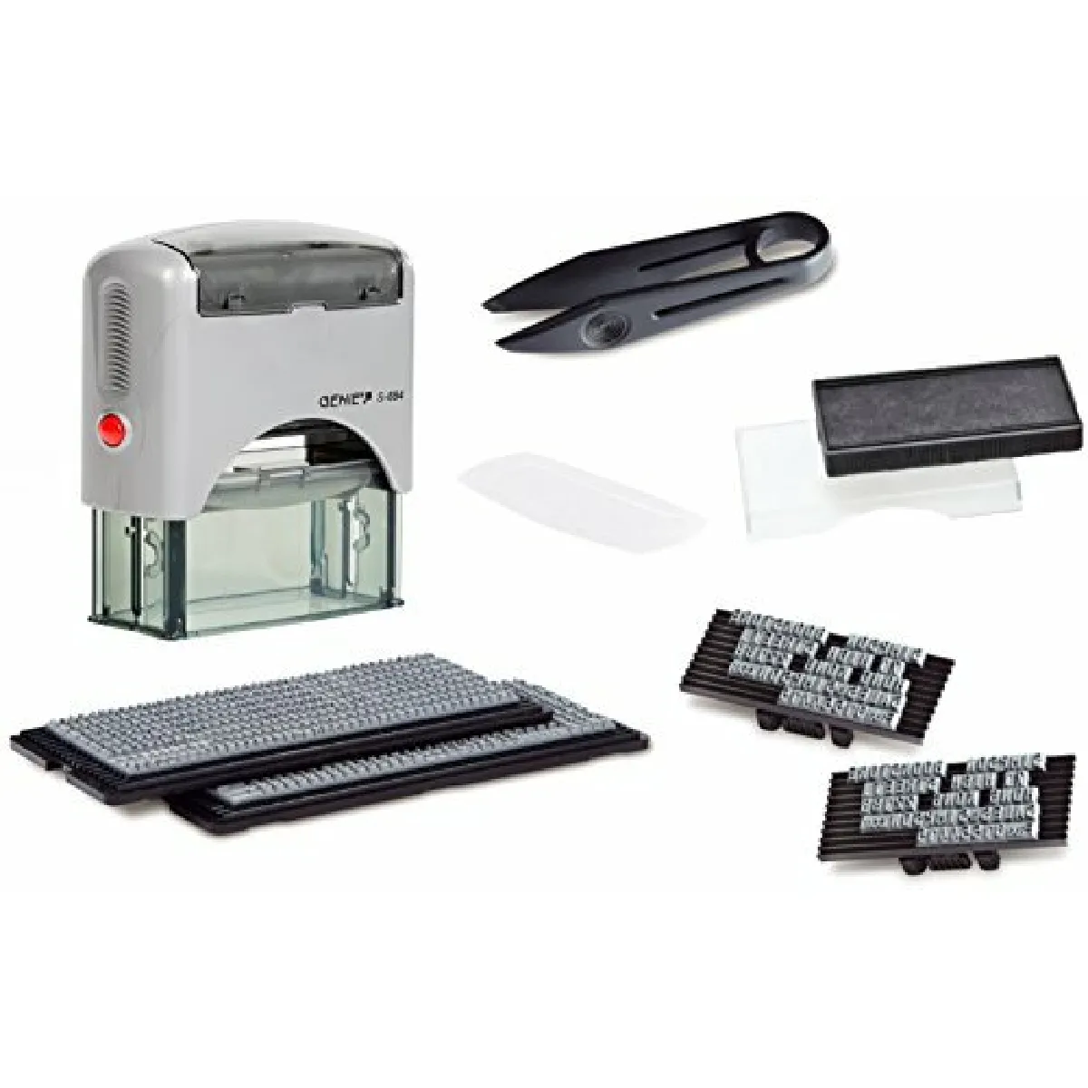 Pincette incluse pour placer les lettres/symboles, cassette d'encrage incluse, facilement interchangeable.
