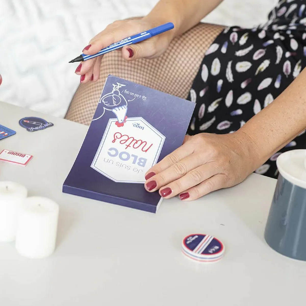 Bloc-notes sut le thème 'frenchy' aux couleurs de la France. Ce carnet de prise de notes qest idéal pour noter vos idées, to-do list et rendez-vous dans une ambiance chauvine, décalée et affective des icônes françaises. Ses pages blanches avec lignes en pointillés vous faciliteront la prise de notes, et chacune d'entre elle est illustrée de coqs en bas de page. 100 pages détachables. Taille : 11,8 x 18 cm. 100 pages imprimées de papiers lignés façon to-do list. Motifs : Coq en bas de page. Grammage : 80g.