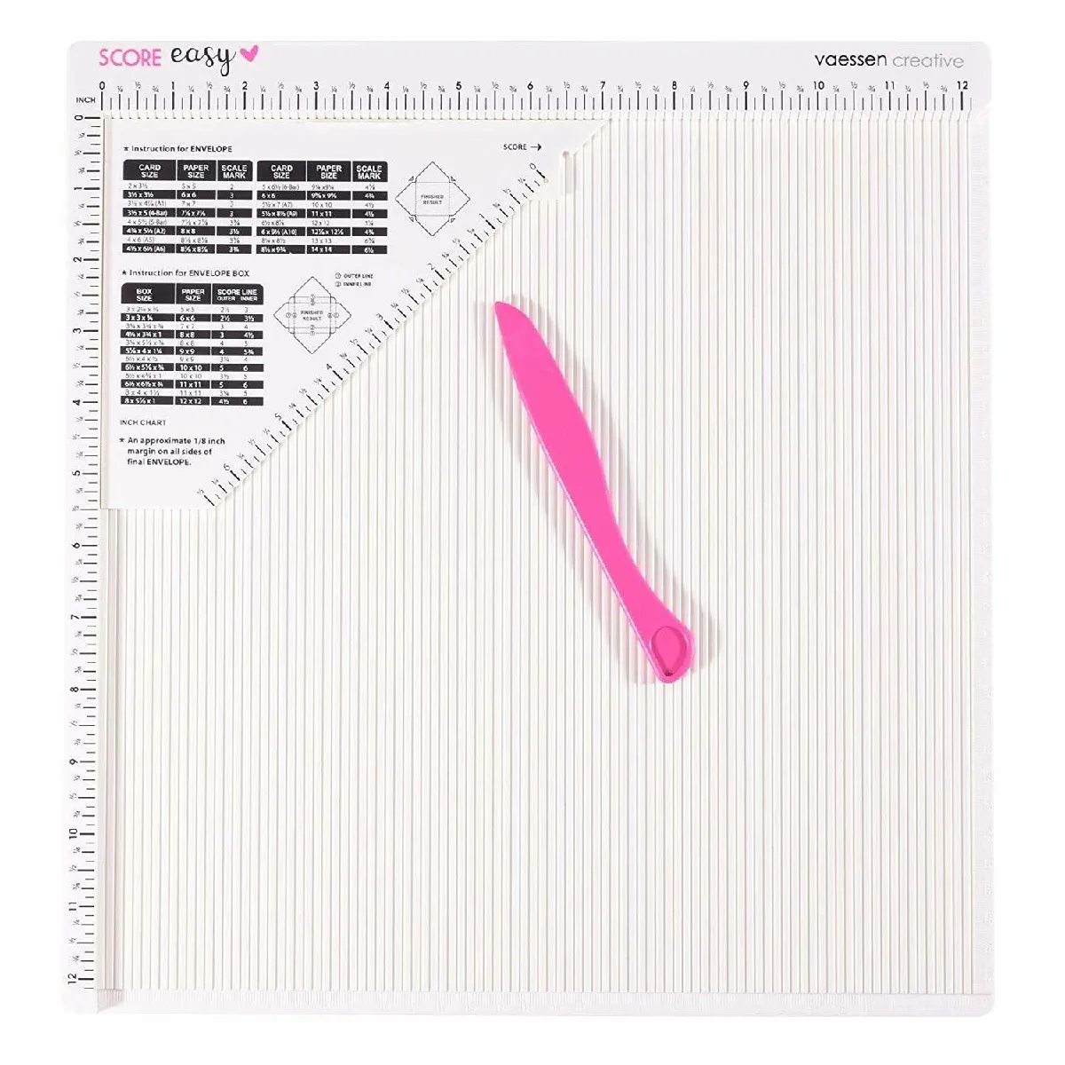 Vaessen creative - PLAQUE DE RAINURAGE ? La plaque de rainurage de Vaessen Creative est un outil pour le loisirs créatifs qui peut être utilisé pour créer des lignes de pliage parfaitement nettes pour toutes sortes de loisirs créatifs colorés. La plaque est fourni avec un plieuse os, un utile guide de mesure et des instructions pour fabriquer des enveloppes