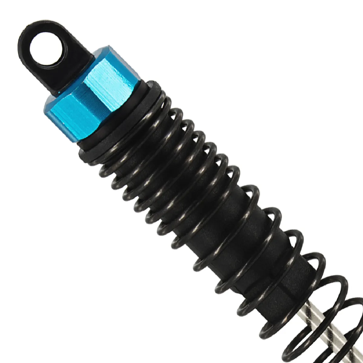 Optimisez l'absorption des chocs de votre véhicule avec ce kit d'amortisseurs 08058, fourni par 2, pour formats Monster Truck 1/10 électriques et thermiques. La construction combine une partie centrale en plastique et un ressort hélicoïdal noir, avec des éléments visibles comme le capuchon anodisé bleu et la tige métal chromée. Chaque unité présente un soufflet anti-poussière qui limite l'intrusion de saletés sur la tige, afin de préserver la fluidité de fonctionnement sur terrains meubles ou poussiéreux. La finition bleue facilite l'identification lors des remplacements et s'intègre à de nombreux châssis au format 1/10.