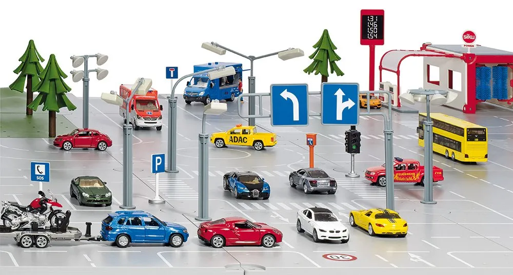 Ce kit ajoute des éléments réalistes pour structurer un petit réseau routier et un espace de stationnement. Il comprend des lampadaires pour éclairer une zone de parking, des lampes de chantier adaptées aux scènes de travaux et différents panneaux de signalisation pour matérialiser les règles de circulation. Les pièces en métal apportent une bonne stabilité sur la surface de jeu et résistent aux manipulations répétées, idéal pour des configurations qui changent régulièrement. Compatible avec l'univers SIKUWORLD, l'ensemble permet de créer un environnement cohérent autour des véhicules miniatures.