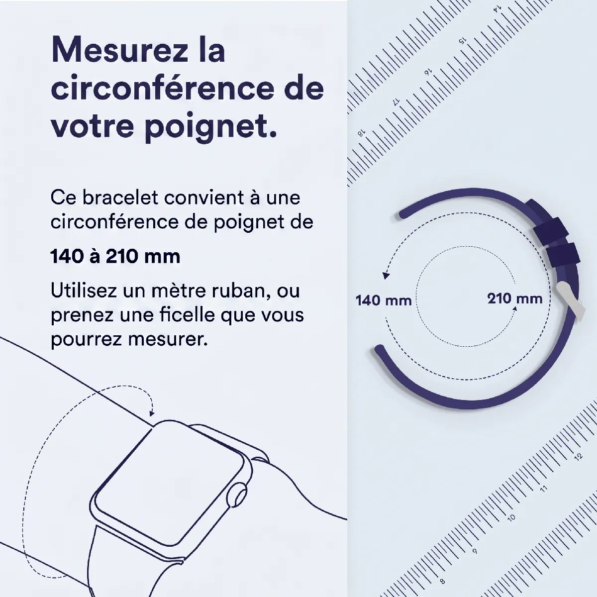 Silicone doux et souple Ce bracelet en silicone est fait de fluoroélastomère, un matériau à la fois doux et résistant. Le traitement UV spécial rend le bracelet lisse au toucher. Il est donc confortable sur la peau et convient également pour être porté pendant le sommeil. Donc pas de soucis concernant l'irritation ou l'inconfort.