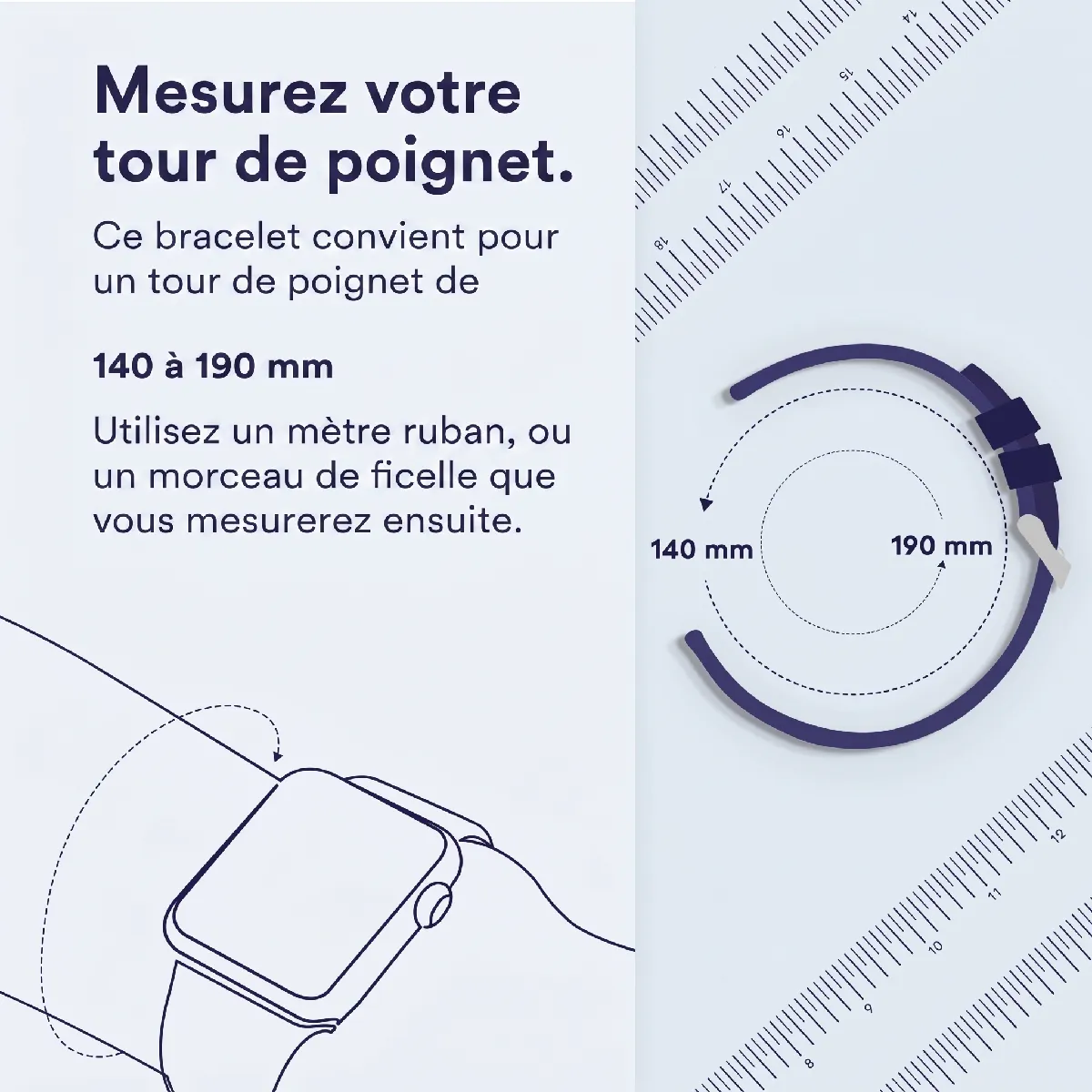 Silicone doux et souple Ce bracelet en silicone est fait de fluoroélastomère, un matériau à la fois doux et résistant. Le traitement UV spécial rend le bracelet lisse au toucher. Il est donc confortable sur la peau et convient également pour être porté pendant le sommeil. Donc pas de soucis concernant l'irritation ou l'inconfort.
