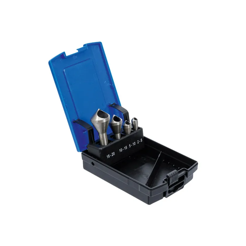Idéal pour ébavurer et chanfreiner des perçages, ce jeu de 4 fraises permet d'obtenir des bords propres sur le métal. Les arêtes sont lissées rapidement grâce à une géométrie de coupe efficace combinée à l'acier HSS, adaptée aux travaux courants en atelier. Chaque outil couvre une plage dédiée pour s'adapter aux ouvertures les plus fréquentes, ce qui facilite l'ajustement et limite les changements. Le trou transversal intégré améliore l'évacuation des copeaux lors du chanfreinage pour des opérations plus régulières.