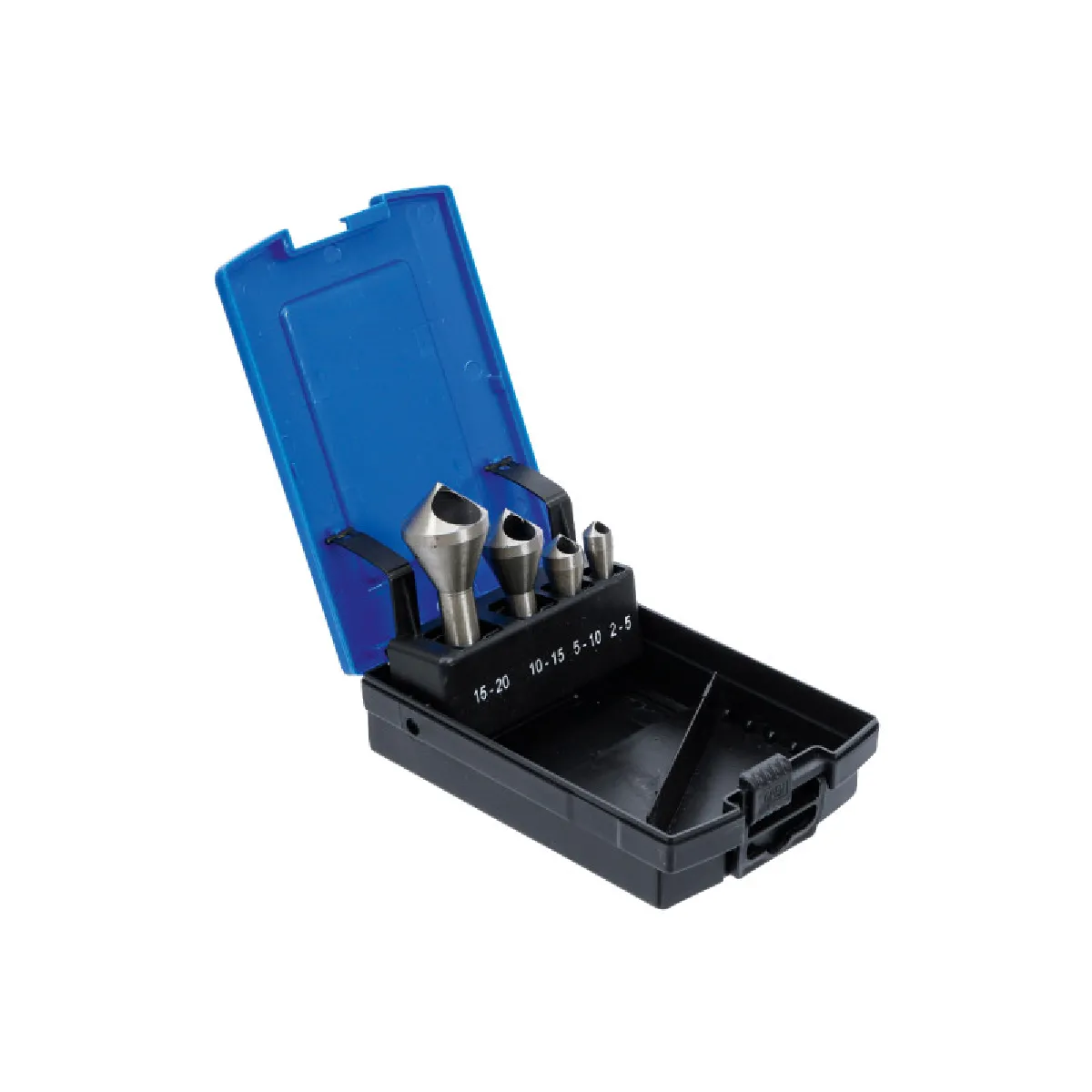 La composition en acier HSS pour la longévité et la constance de coupe convient aux applications sur métal avec une bonne tenue à la chaleur. Les quatre tailles couvrent des diamètres de 2 à 20 mm, ce qui aide à traiter aussi bien les petits perçages que les ouvertures plus larges. Le jeu est livré dans son emballage d'origine pour un rangement pratique, prêt à être intégré à une caisse à outils professionnelle ou d'atelier.