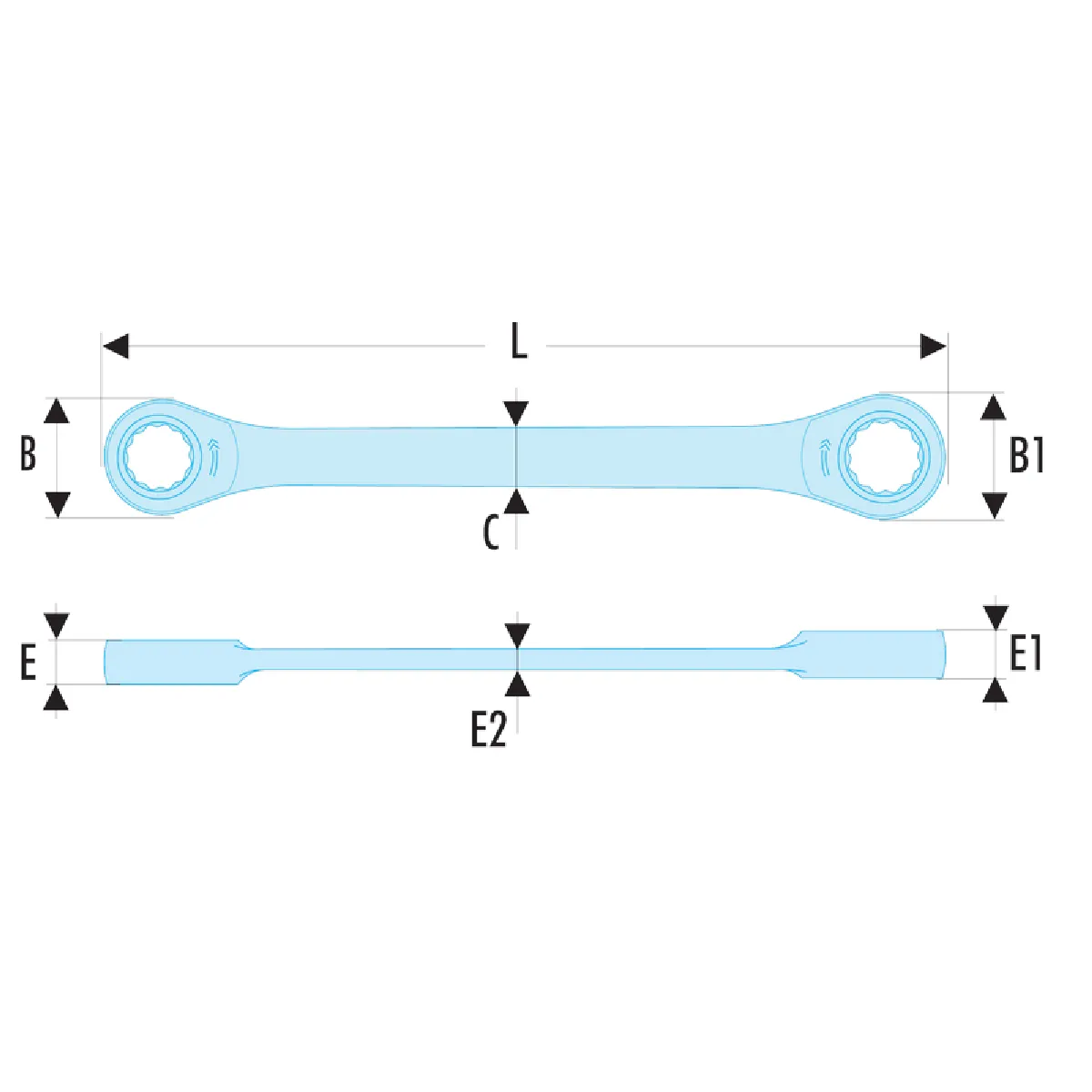 - Tête mixte : côté ouverture pour prise rapide et côté cliquet pour accélérer le serrage