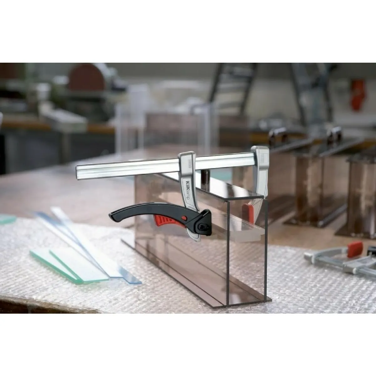 Particulièrement indiqué pour les matériaux fragiles, ce serre-joint aide à préserver les surfaces grâce à un maintien progressif et une stabilité sous vibration. L'ergonomie de la crémaillère favorise la répétabilité du geste et la constance de pression. La conception en alliage de magnésium apporte robustesse et faible inertie, pratique en enchaînement de serrages. Le dispositif permet de sécuriser des collages, positionner des chants ou immobiliser des composants lors d'usinages légers, tout en gardant une pression contrôlée et régulière.