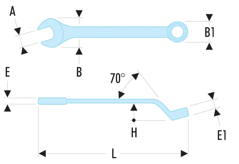 La prise sur les écrous de 24 mm reste ferme grâce au profil mixte qui combine une ouverture à fourche et une tête il. La géométrie contrecoudée pour un meilleur dégagement facilite l'accès lorsque l'environnement est encombré, limitant les risques d'arrachement sur les arêtes. Le corps en métal chromé résistant à l'oxydation supporte un usage intensif en atelier ou sur chantier, tout en se nettoyant facilement après intervention. L'équilibre entre longueur et section assure le bras de levier nécessaire pour serrer et desserrer avec maîtrise, sans compromettre la maniabilité à proximité d'éléments sensibles.