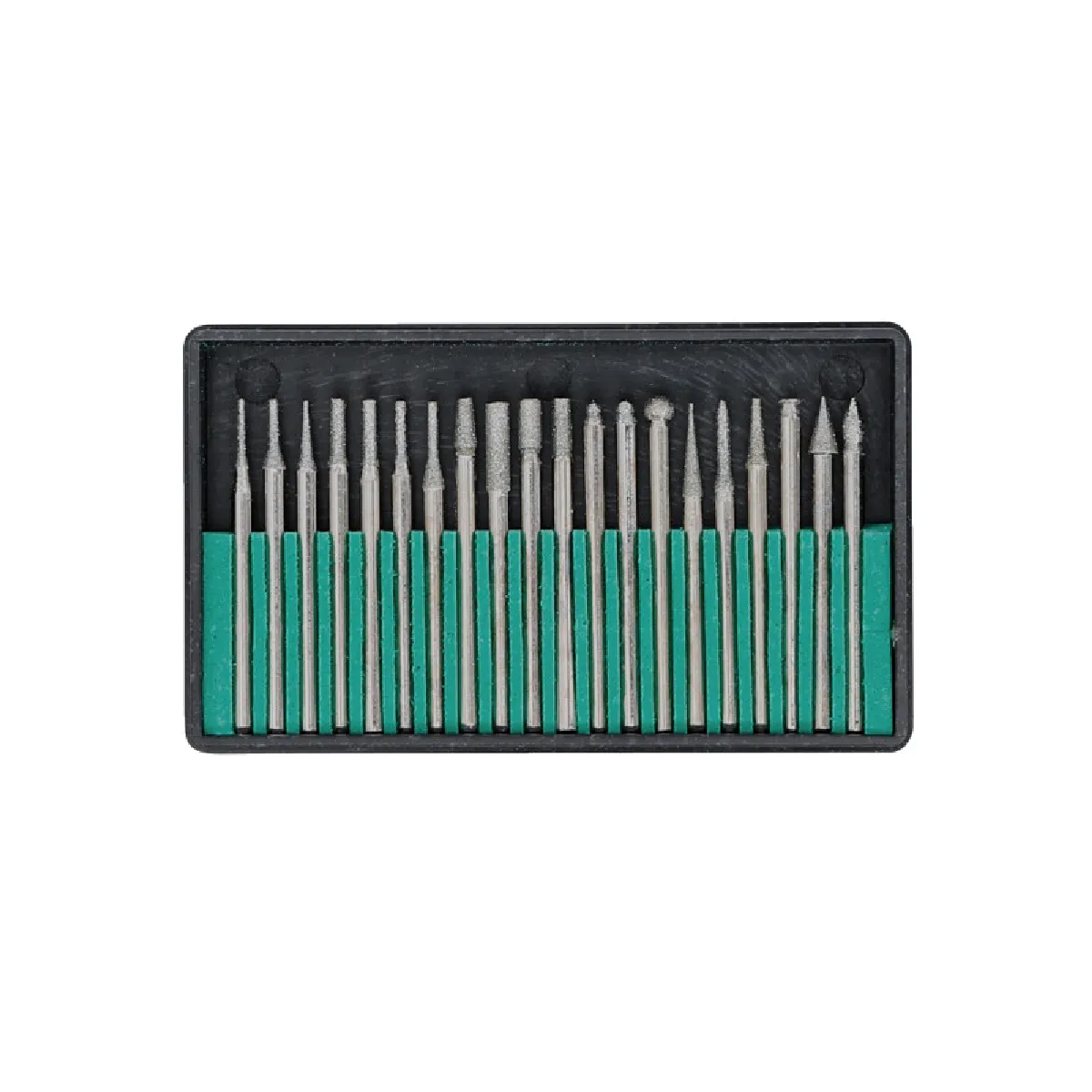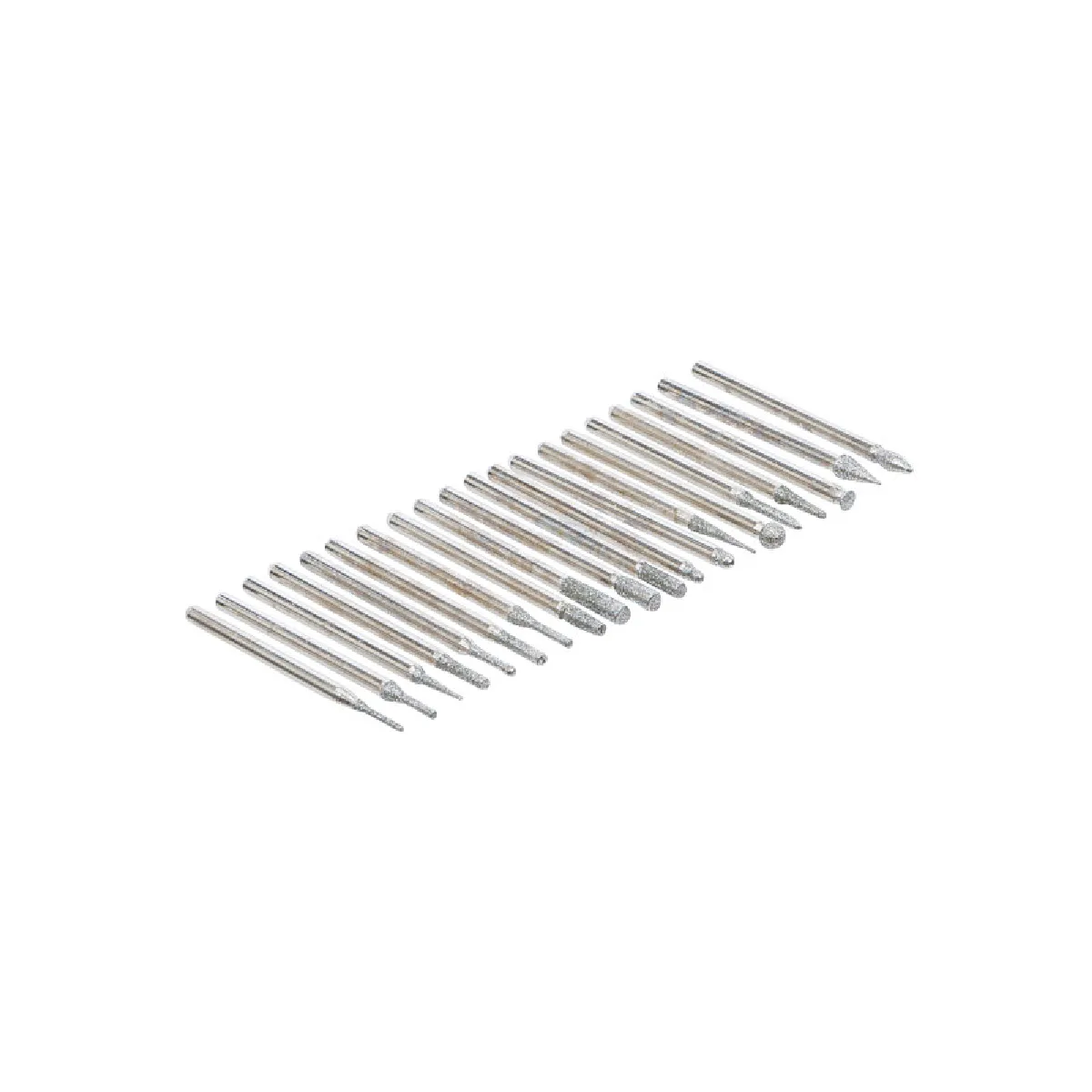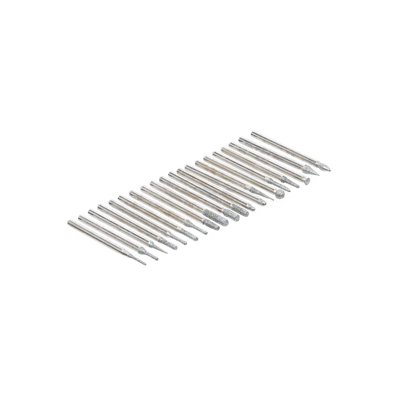 Idéal pour le polissage et le formage, ce jeu propose 20 fraises diamantées adaptées au verre, à la céramique, à l'acier et à la pierre. La granulation diamantée assure une coupe régulière et une usure limitée, utile pour des travaux soignés et répétitifs. Avec une tige de 3 mm compatible avec de nombreuses micro-meuleuses, chaque fraise se monte rapidement pour enchaîner les opérations de détail, de chanfrein ou d'ébavurage.