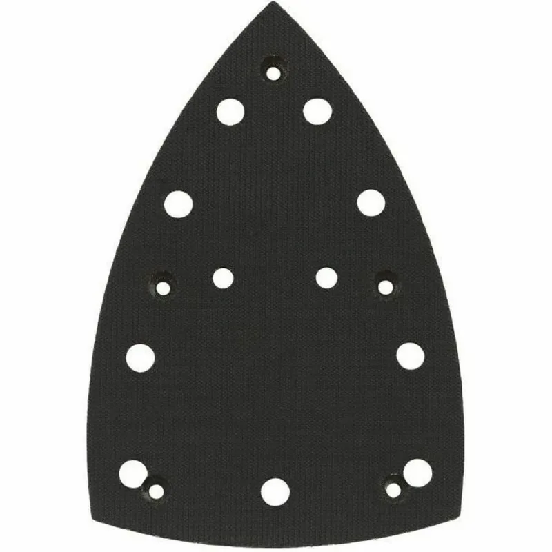L'accessoire facilite les travaux de ponçage de zones difficiles grâce à sa forme triangulaire adaptée aux angles et aux bords. La surface en Velcro auto-agrippant pour un montage et un remplacement rapides des abrasifs permet de gagner du temps sur les séries de finitions. Sa conception perforée pour une meilleure évacuation des poussières pendant le ponçage contribue à maintenir la surface plus propre et à améliorer la visibilité de travail.