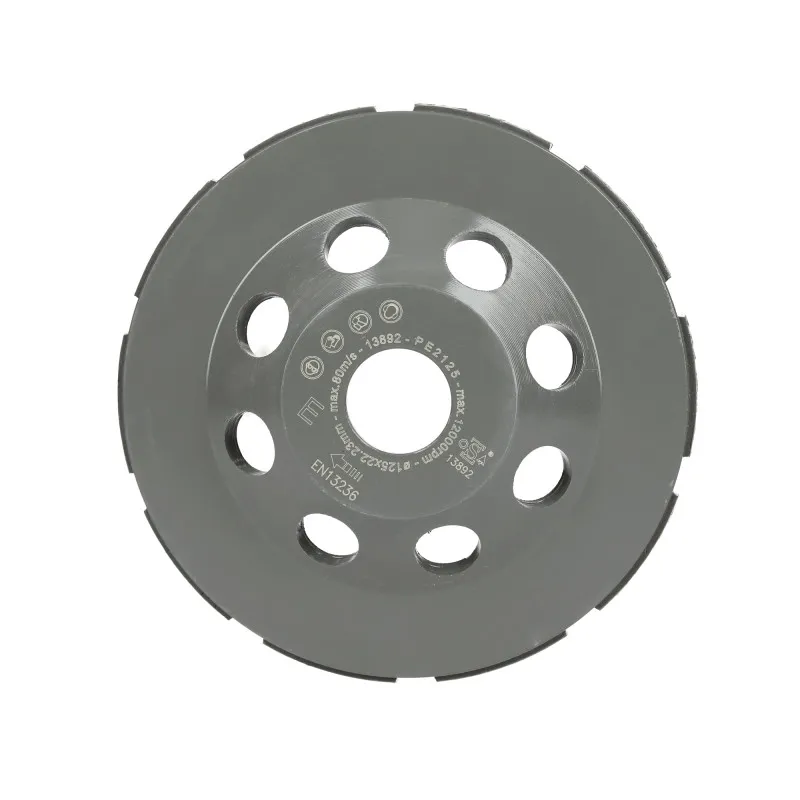 Le plateau de 125 mm assure une abrasion régulière et efficace sur béton et résidus époxy, avec une géométrie optimisée pour des surfaces homogènes. Les deux rangées de segments diamant augmentent la surface active afin de retirer les irrégularités plus rapidement tout en maîtrisant l'échauffement. L'alésage de 22,23 mm permet un montage sécurisé sur des outils compatibles, limitant les vibrations et favorisant une progression stable. Les ouvertures dédiées facilitent la gestion des poussières sur chantier, ce qui améliore la visibilité et contribue à préserver l'efficacité des segments dans la durée.