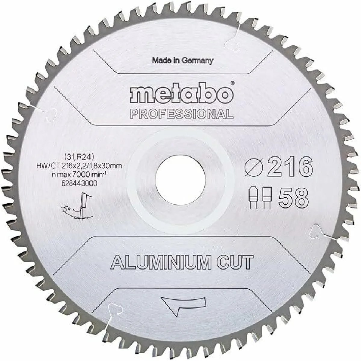 - Dimensions : 216 x 2.2 x 30 mm ; épaisseur du corps 1.8 mm ; 58 dents FZ/TZ, angle 5°