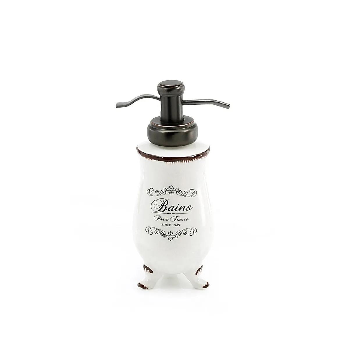 DISTRIBUTEUR DE SAVON D'APPUI SHABBY CHIC EN CÉRAMIQUE AVEC DÉCORS RÉTRO
