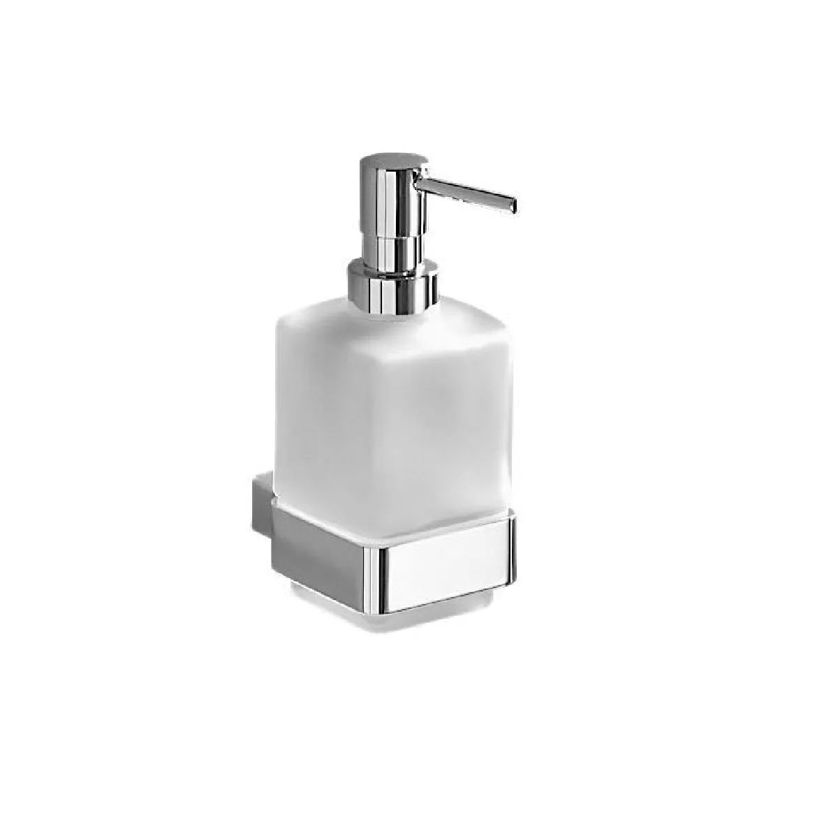 DISTRIBUTEUR DE SAVON CHROMÉ AVEC VERRE SATINÉ s accessoires de salle de bains de la série Senator se distinguent pour le design moderne et élégant et ce distributeur pour savon liquide n'en est pas des moins. Le distributeur de savon présenté sur cette page se compose d'un récipient en verre sablé et d'un support en laiton chromé brillant pour la fixation murale. Simple, moderne et élégant, vous pouvez placer ce produit ou mieux vous semble. Pour la fixation, vous pouvez choisir d'utiliser les vis comprises dans le prix de vente ou utiliser une colle appropriée (qui peut être achetée séparément) pour éviter le percement du mur.