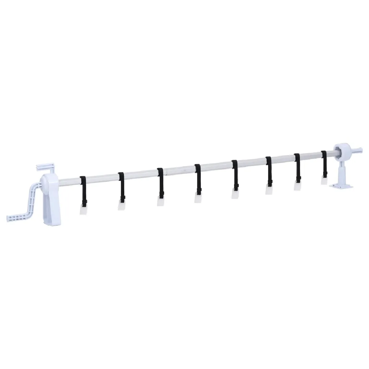Le rouleau comporte une glissière réglable et peut être facilement ajusté en fonction de la couverture (convient aux couvertures d'une largeur maximale de 6,15 m). Il est équipé de 2 manivelles avec bouton manuel pour un contrôle facile. Lorsque les manivelles de roue sont tournées, la couverture glisse sans effort sur le rouleau à l'aide des cordons inclus. Le tube du rouleau est en aluminium résistant à la corrosion et aux intempéries, ce qui est résistant et très durable.