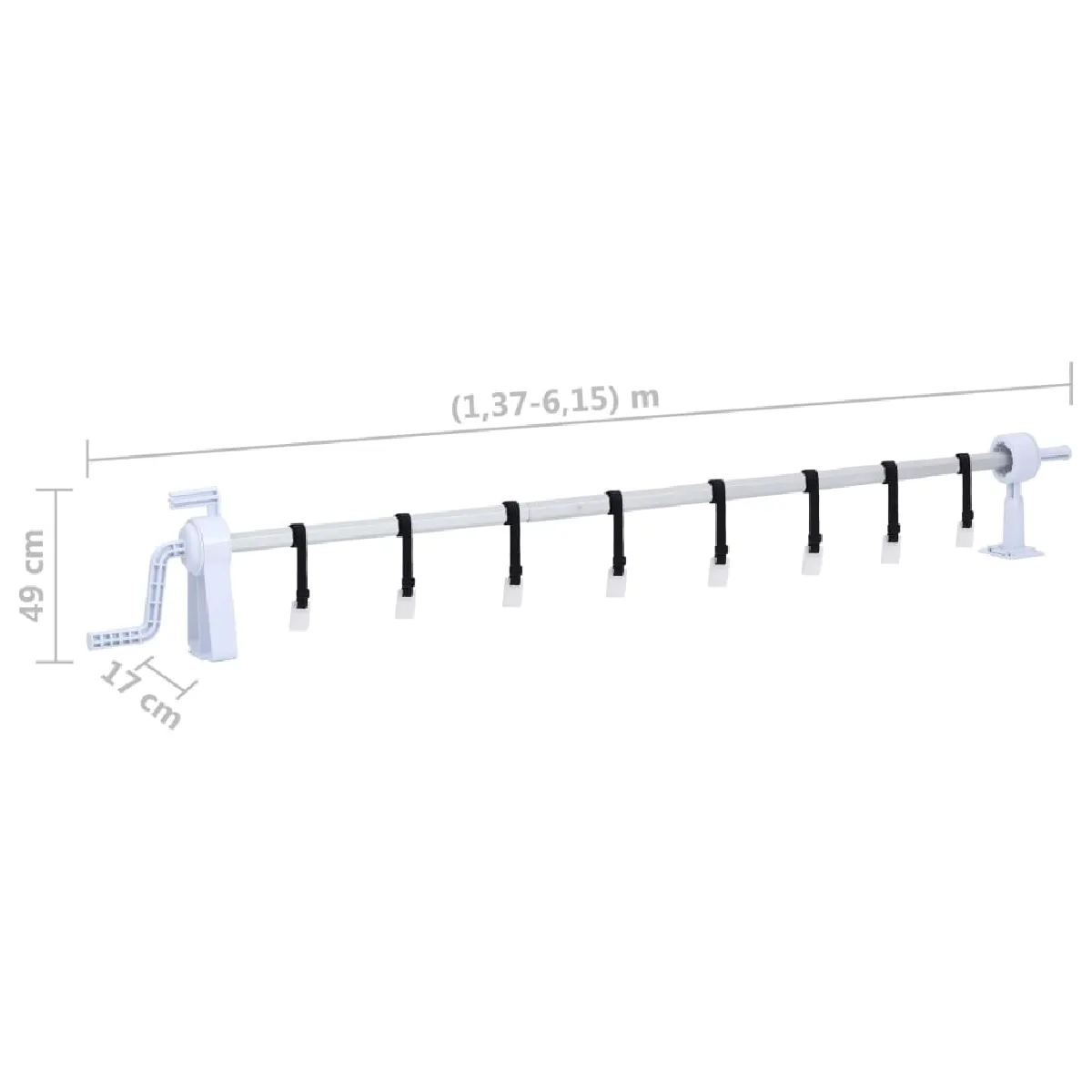 - Longueur de l'enrouleur télescopique assemblé : 1,37 - 6,15 m