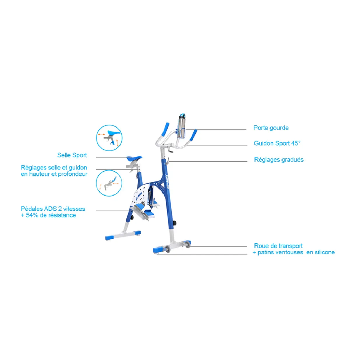 Aquabike - Aluminium Tech T6 - Multi ajustable - Bleu