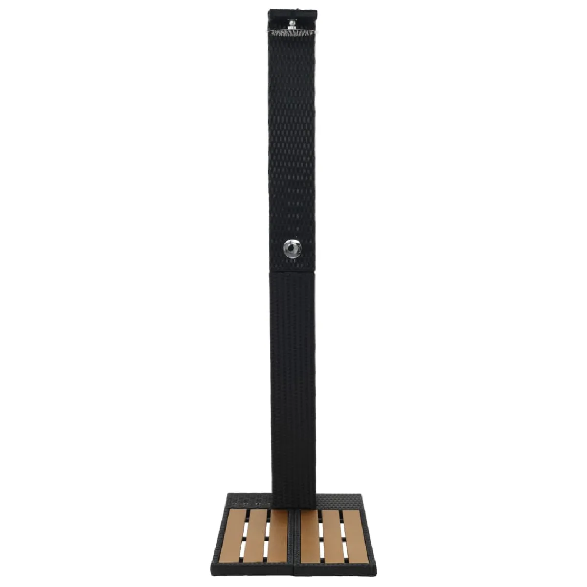 - Matériau robuste : cette douche de jardin élégante a un poteau en résine tressée et un plancher en WPC. Les deux matériaux sont connus pour leur résistance aux intempéries et leur durabilité.