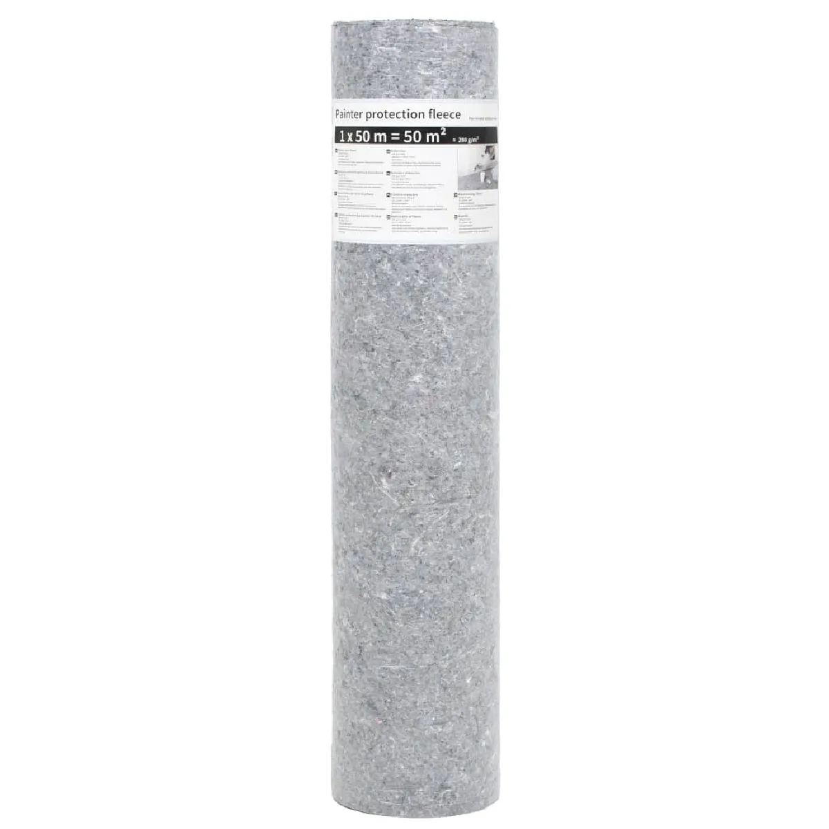 Cette bâche contre salissure hautement absorbante avec un poids de 280 g / m² mesure 1 m de largeur et 50 m de longueur pour une surface totale de 50 m². Cette taille facilite le déroulement de la bâche et son enroulement après utilisation. La bâche de protection est fabriquée en tissu non tissé gris avec des fibres colorées et est recouverte d'un film PE qui la rend totalement résistante à l'eau. La bâche contre salissure a un dessous antidérapant.