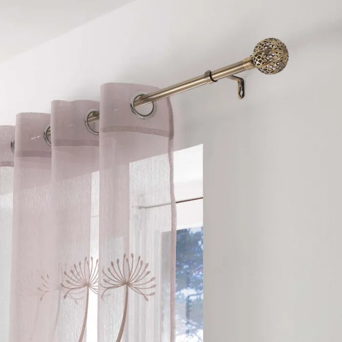La tringle extensible offre une plage d'ajustement de 120 à 210 cm pour s'adapter à différentes largeurs de fenêtres sans découpe. En métal finition laiton, elle assure une structure solide et robuste pour un usage quotidien, tout en apportant une touche décorative discrète. Les embouts fantaisie complètent l'ensemble avec une esthétique cohérente et soignée dans un intérieur.