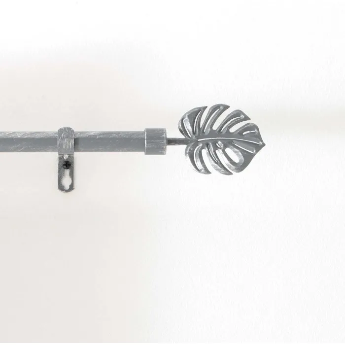 La tringle extensible couvre facilement des baies de 120 à 210 cm sans ajout d'éléments, pratique pour ajuster la pose selon la largeur de la fenêtre. Sa structure en métal gris et argent assure une tenue stable avec des rideaux légers à moyens, tout en gardant un encombrement discret grâce au diamètre de 1.9 cm. Le kit inclut des embouts décoratifs feuille pour un rendu soigné et une finition homogène. Avec un poids de 0.47 kg, l'ensemble reste simple à manipuler lors de l'installation et s'intègre dans diverses pièces de la maison.