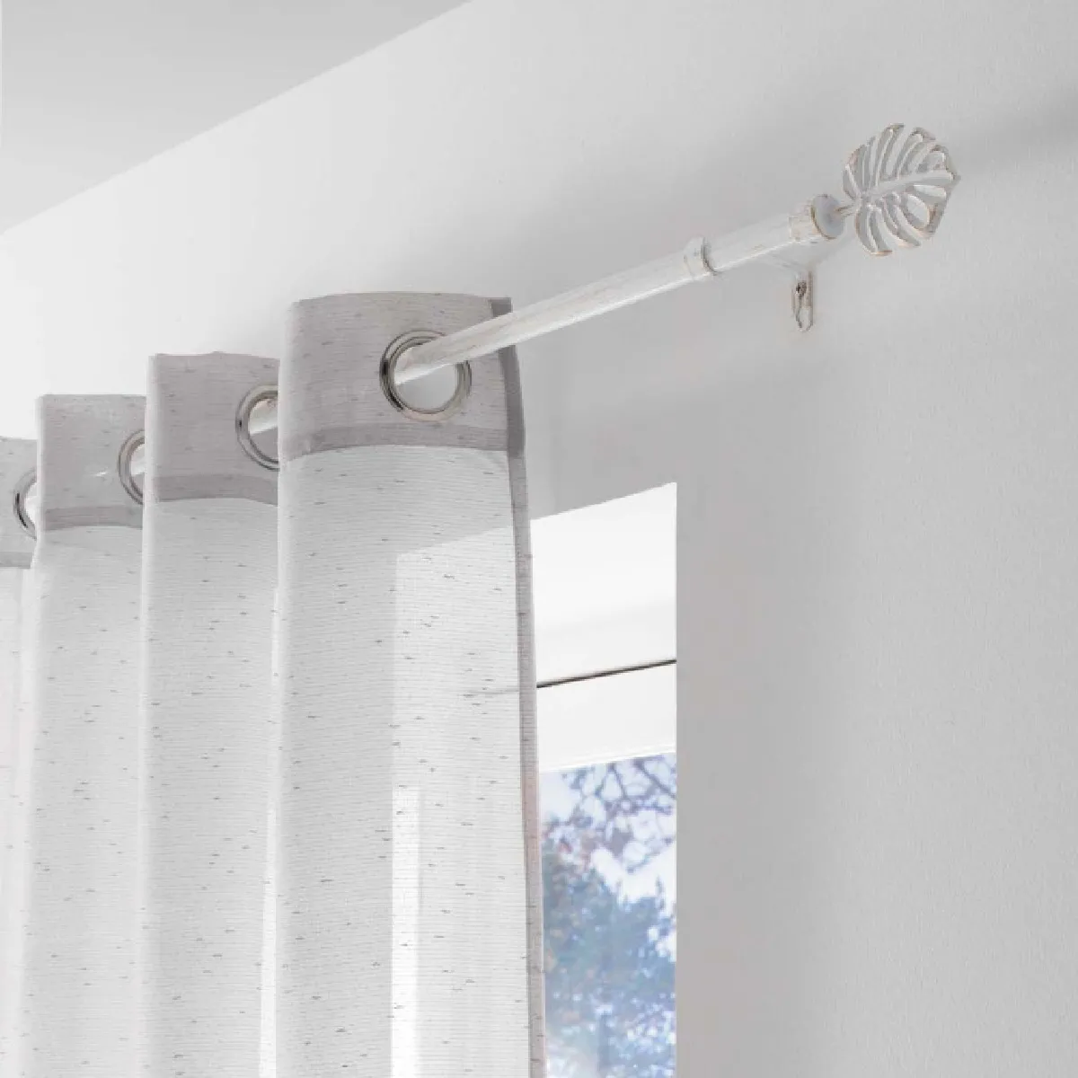 Le kit est prévu pour un montage nécessaire afin d'obtenir un ajustement précis entre 120 et 210 cm. Sa structure légère de 0,47 kg facilite la manipulation lors de la pose, tout en conservant une construction en métal résistante pour une utilisation régulière. La finition blanche met en valeur les textiles clairs comme les tissus contrastés, et les embouts décoratifs complètent l'ensemble sans surcharge visuelle.