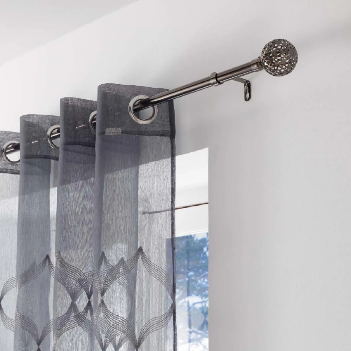 La plage extensible de 120 à 210 cm s'adapte à différentes largeurs de fenêtres, ce qui facilite la mise en place sans découpe ni outillage complexe. La structure en métal nickelé offre une finition discrète et résistante adaptée aux usages quotidiens, tout en assurant une tenue fiable pour des rideaux légers à moyens. Les embouts fantaisie ajoutent une touche décorative sobre, cohérente avec des intérieurs contemporains ou classiques.