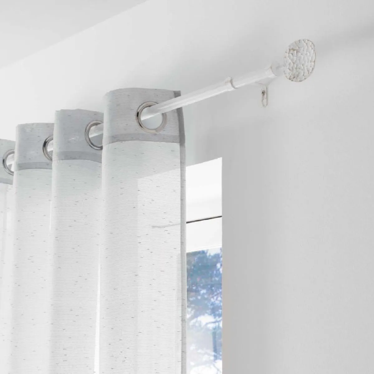 La finition sobre favorise une intégration visuelle harmonieuse avec des voilages ou des tissus opaques. L'extension télescopique réduit le besoin de recoupe et permet un réglage précis au mur. Ce kit convient lorsqu'un ajustement rapide et propre est nécessaire dans une pièce à vivre ou une chambre d'amis. Le montage est requis ; il suffit de positionner la longueur souhaitée, de fixer les supports adaptés et d'installer les rideaux. La combinaison Blanc et Or des embouts ajoute une touche décorative mesurée, sans dominer la pièce.