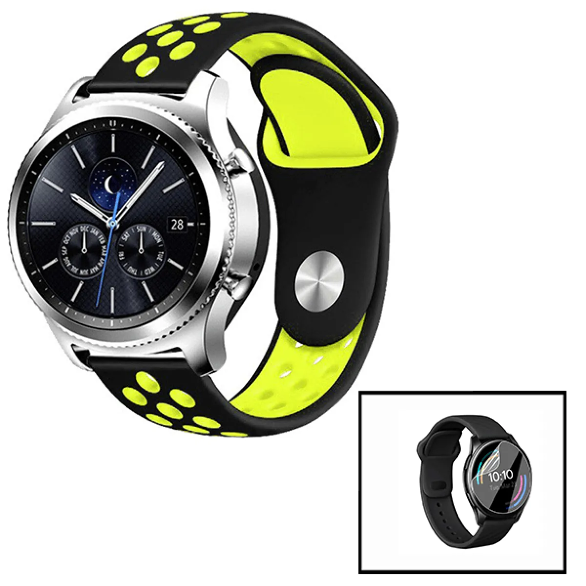 Commentaire vendeur : Kit Bracelet SpOrtystyle + Film de Hydrogel pour Garmin Vivomove Luxe - 42mm - Noir / Vert fluorescent