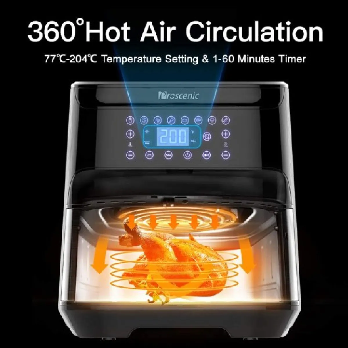 Friteuse à air connectée - 1700 W - 9 programmes - Contrôle app et Alexa - Écran tactile - Réservoir amovible - Thermostat réglable - Maintien au chaud