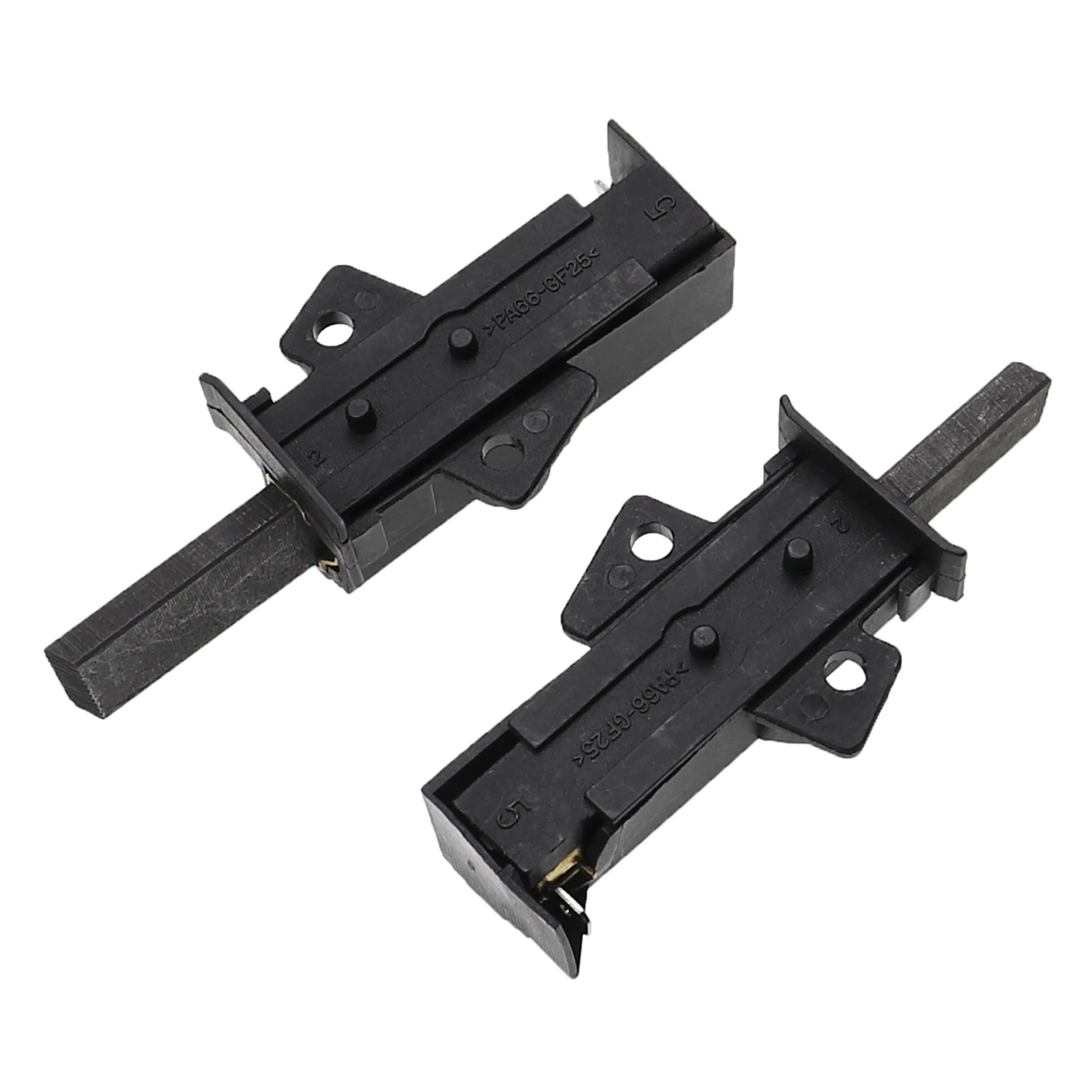 Balais de charbon pour moteur d’électroménager - Avec support - Graphite/plastique - Compatibles Privileg PWF 5545 - Faible étincelage - Longue durée de vie - Languette 4,8 mm AMP - Rotation gauche
