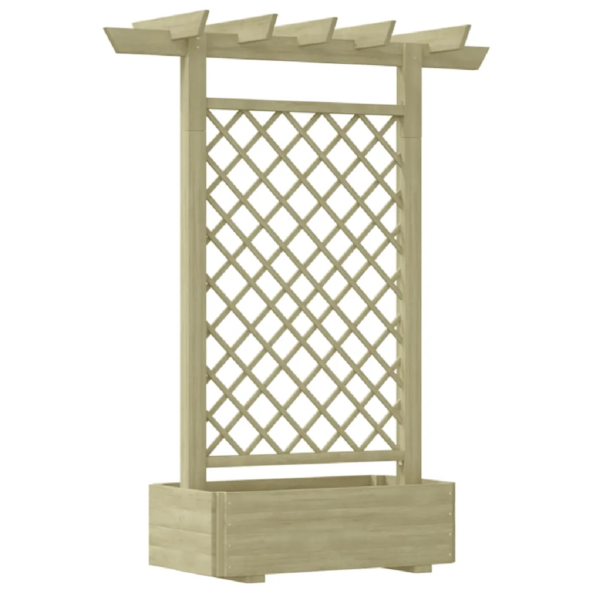 Fabriquée en bois de pin imprégné de vert, cette jardinière en bois est très robuste, durable et imputrescible. Le treillis intégré constitue un excellent support pour les rosiers ou autres plantes grimpantes.