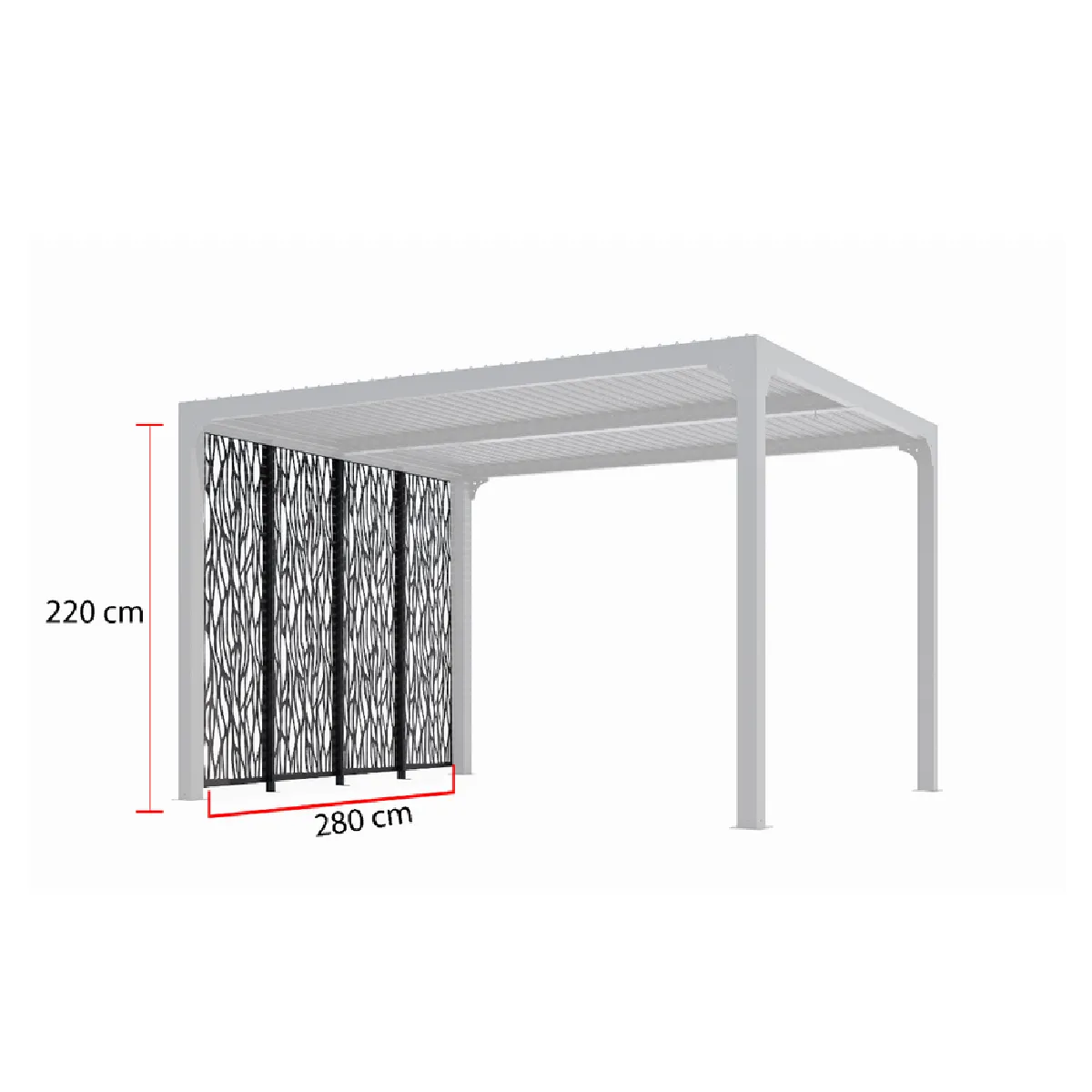 4 panneaux moucharabieh en acier haute performance finition époxy gris anthracite pour côté 3 m - per3630m30 - La pergola bioclimatique Habrita PER3630M30 vous protège du soleil l'été et laisse pénétrer la lumière et la chaleur l'hiver.Installés sur l'un des 2 flancs de 3 mètres de la pergola bioclimatique, les 4 panneaux,véritables écrans en acier époxy, proposent un coin d'ombrage qui diminue les effets d'un soleil tonique, et dompteront, au travers des élégantes volutes ajourées qui les composent, des vents insistants en douce ventilation.Indépendant, chaque panneau est composé d'une surface plane ajourée de formes végétales, design et contemporaines, serti sur un cadre de 2,50 m. On joint les panneaux à la pergola et à 3 poteaux centraux que l'on fixe au sol, ainsi on renforce la résistance de l'ensemble aux différentes pressions des vents et chocs divers. Composé d'un acier de 1 mm, très résistant, chaque panneau et poteau est thermolaqué pour réduire l'altération du temps et des intempéries.Simples à mettre en place sur les faces de 3 m de votre pergola, ils conviendront parfaitement à vos désirs de tranquilité et de quiétude face aux vents, au soleil et aux regards indiscrets.Design résolument moderne et contemporain.Le moucharabieh abrite les personnes des regards indiscrets.Union parfaite du mystère, de l'élégance et du caractère.Panneaux moucharabieh en acier époxy pour une rigidité parfaite et une parfaite décoration de votre terrasse.Panneaux moucharabieh latéraux modulables.