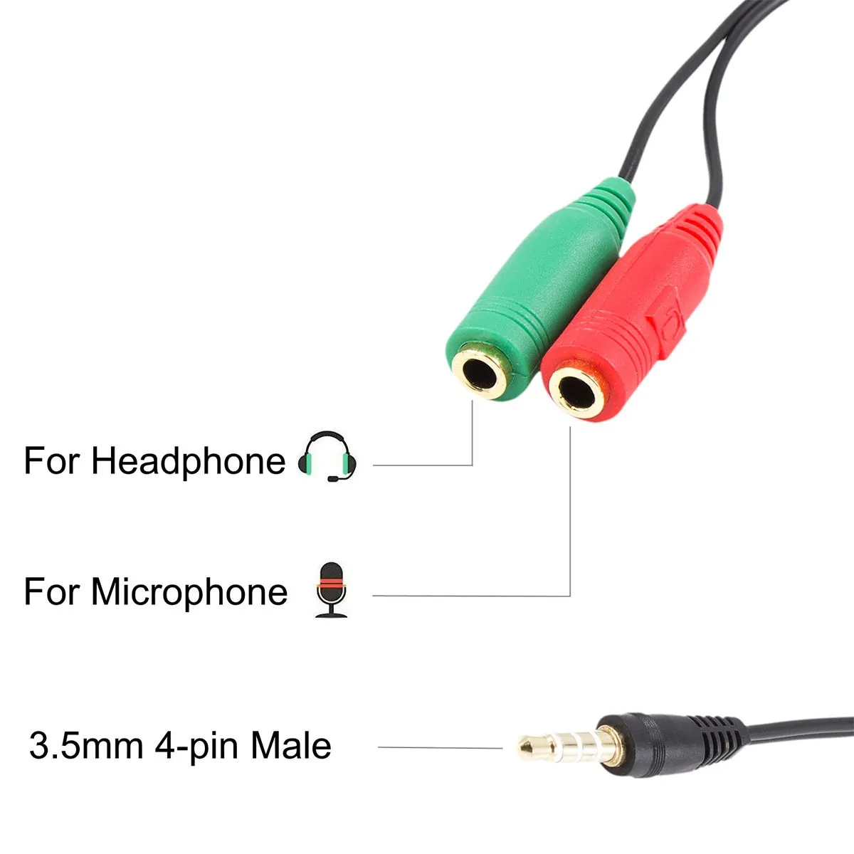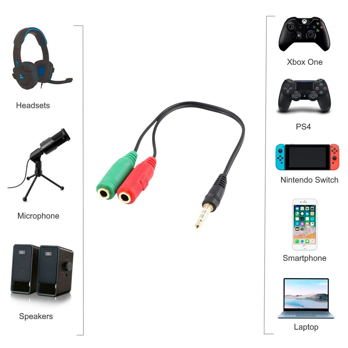 Commentaire vendeur : À propos du câble Ewent EC1640 Jack 3,5 mm mâle vers 2x Jack 3,5 mm femelle 15 cm noir Câble adaptateur audio Jack 3,5 mm mâle à 4 broches d'un côté et deux Jack 3,5 mm femelles à 3 broches de l'autre Idéal pour connecter des écouteurs et un microphone à un appareil avec un port audio de 3,5 mm à 4 broches Fabriqué avec des conducteurs en cuivre de haute qualité. Longueur : 15 cm