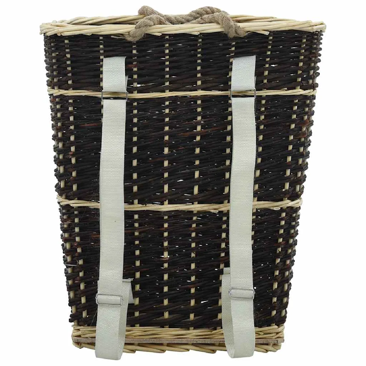 Sac pour bois de chauffage - Saule naturel - Poignées et sangles - Design rustique - Dimensions 50 x 44 x 58 cm