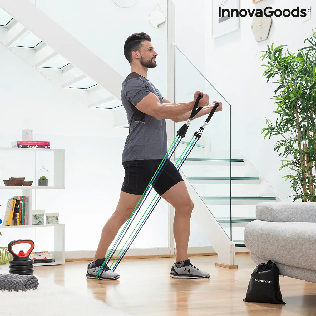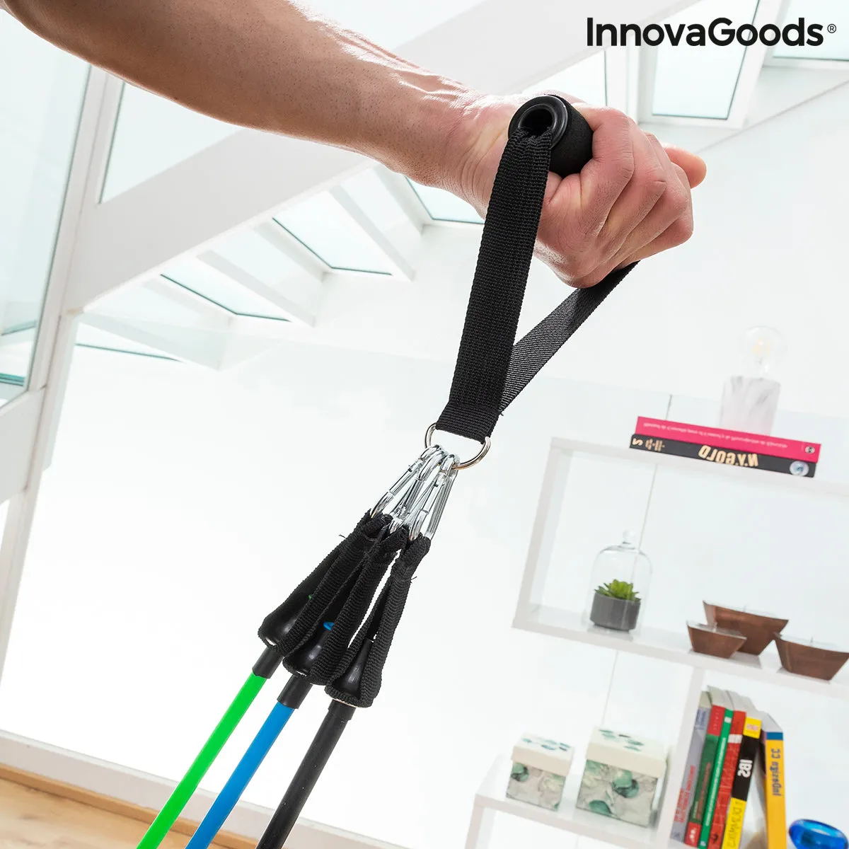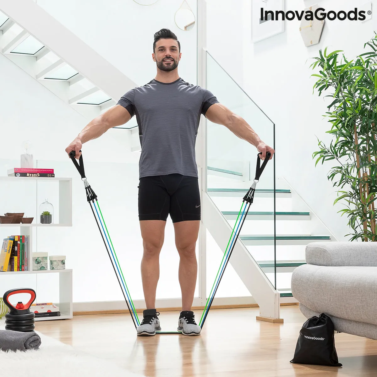 Commentaire vendeur : Retrouvez la forme avec InnovaGoods grâce à ses nouveautés en matière de sport et de fitness, comme Set de Bandes de Résistance avec Accessoires et Guide d´Entraînement Tribainer InnovaGoods 3 Unités ! Découvrez une vaste gamme de produits de qualité qui se démarquent de par leur fonctionnalité, leur efficacité et leur design innovant. Parfaits pour améliorer votre silhouette et votre forme physique !Un set de 3 bandes de résistance ajustables de plusieurs couleurs ( selon niveau d´intensité) qui inclus un guide d´entraînement, sac de transport et accessoires pour réaliser une multitude d´exercices de bras, épaules, poitrine, fessier, jambes, etc. Les bandes élastiques peuvent être utilisées ensemble ou séparément, elles contiennent des poignées en mousse et des mousquetons en métal pour une saisie et une fixation optimales. Grâce à son design portable et son sac de transport, vous pouvez l´utiliser facilement où vous voulez.Matériel: LatexTPENylonCouleur: BleuVertNoirType: Bandes de résistance élastiquesUnités: 3 UnitésGenre: UnisexeAnses avec manches en mousse: x2Sangle pour cheville: x21 ancrage de porte: Facilité d'utilisationMousquetons en métal: Fixation fermeInclut: Guide d'exercicesSac de transport: Facile à transporter et à rangerExercice et remise en forme: Entrainement completEffets bénéfiques: Renforce et tonifie les muscles du corps.Niveau de résistance: Vert: 13,5 kg (30 lb)Bleu: 18 kg (40 lb)Noir: 22,5 kg (50...