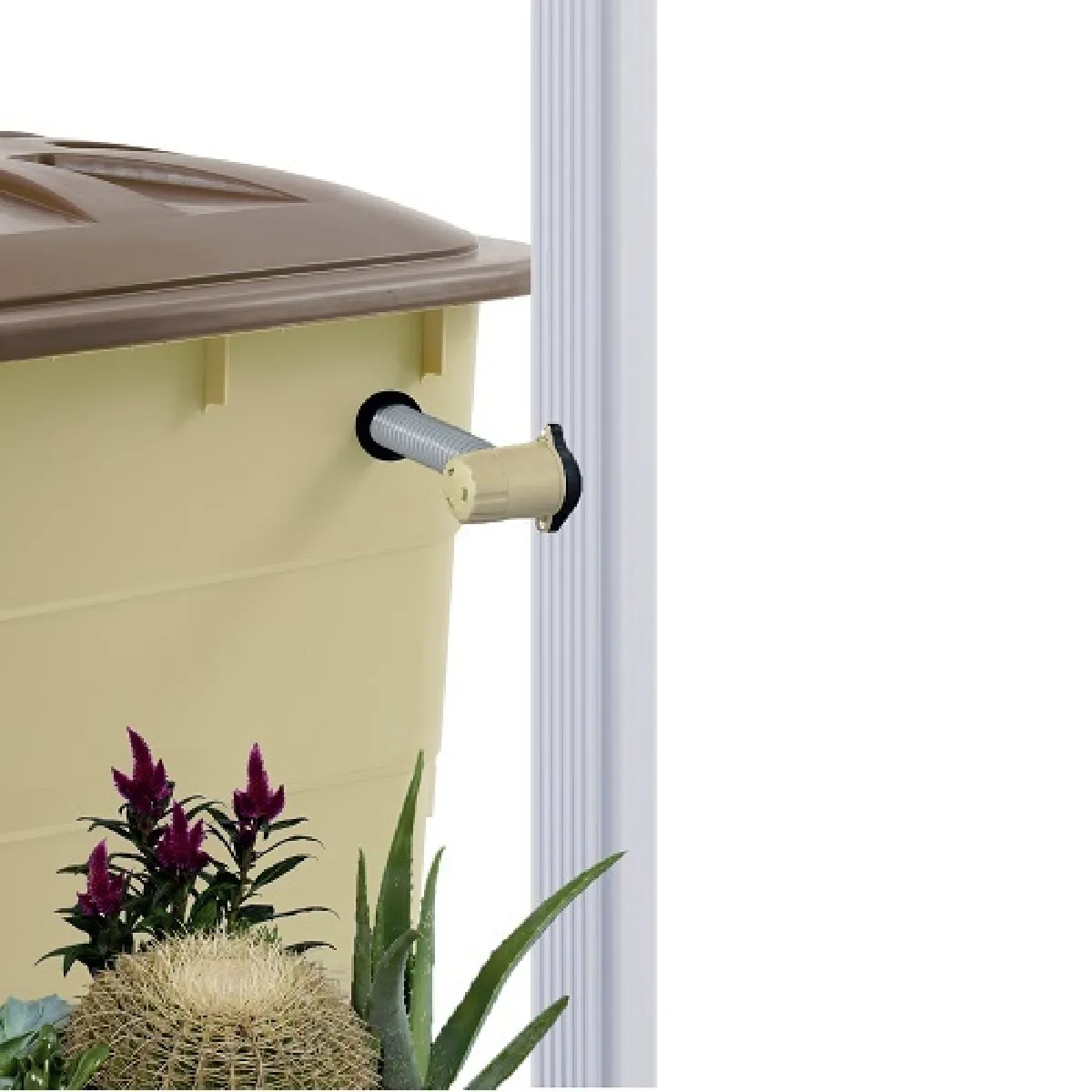 La pose est simplifiée : aucune découpe de la gouttière n'est nécessaire, ce qui réduit le temps d'installation et limite les interruptions d'évacuation. Le format compact facilite l'intégration près de la descente existante et s'adapte aux configurations courantes. En plastique beige, il s'insère discrètement sur la façade et résiste aux usages extérieurs ordinaires. L'ensemble est pensé pour une récupération efficace tout en conservant un entretien accessible et une utilisation quotidienne simple.