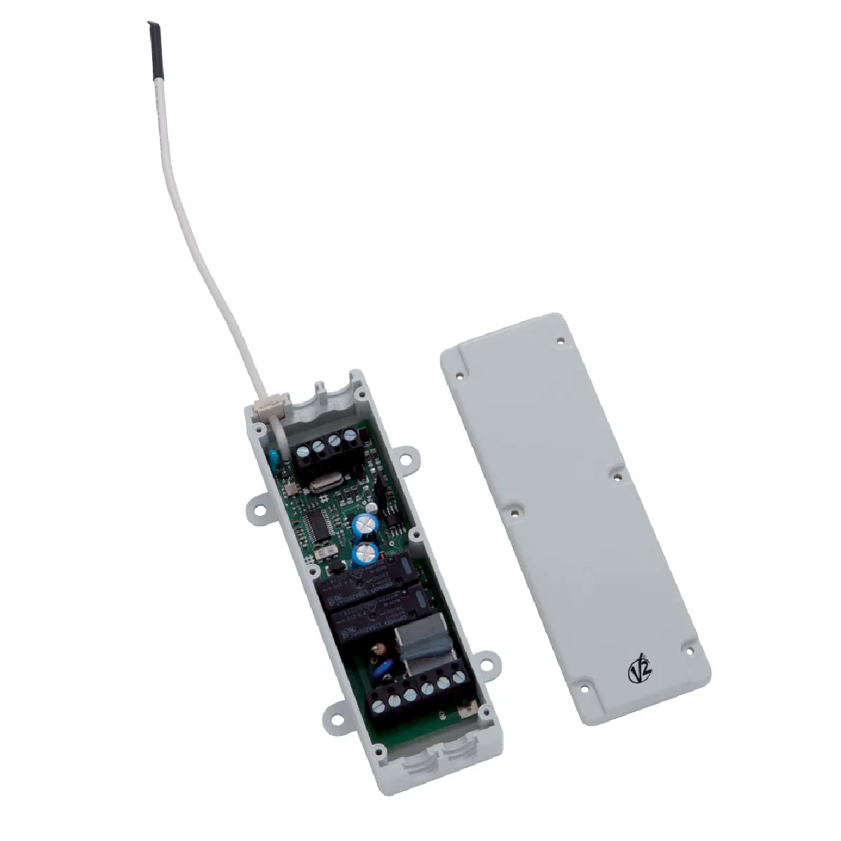 Cette Armoire de commande V2 EASY 1 analogique en 230V est développée pour commander à distance des rideaux métalliques, des volets roulants et des stores. Elle est utilisable afin d’alimenter un moteur monophasé en 230 V. La puissance disponible pour un moteur a été estimée à 700 W maximum. Le récepteur radio peut mémoriser jusqu’à 32 émetteurs..