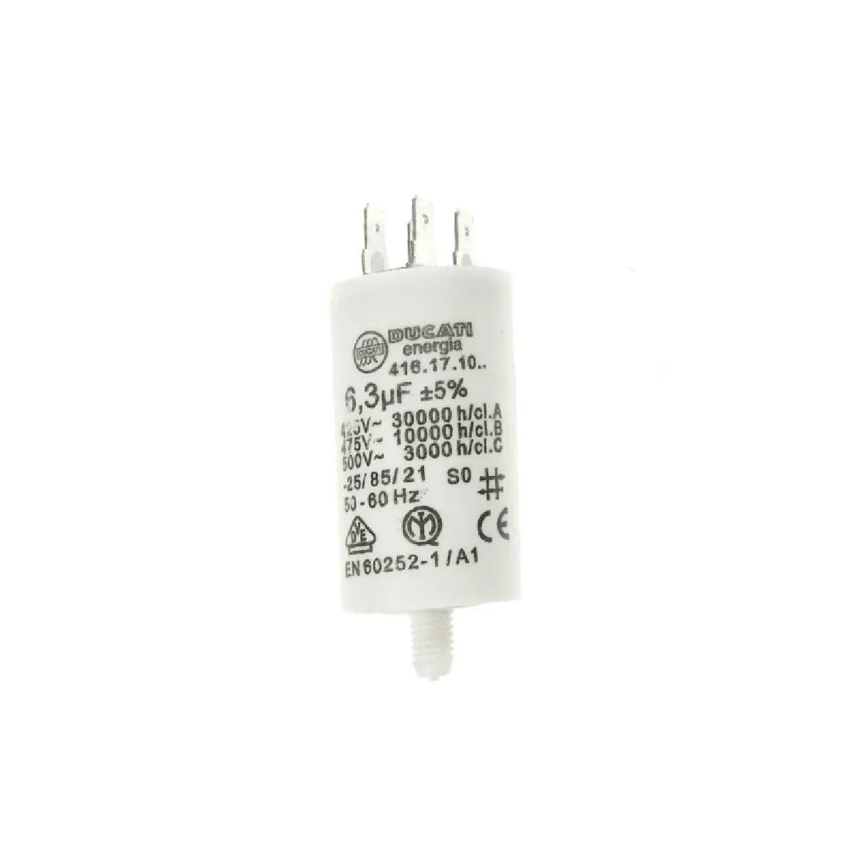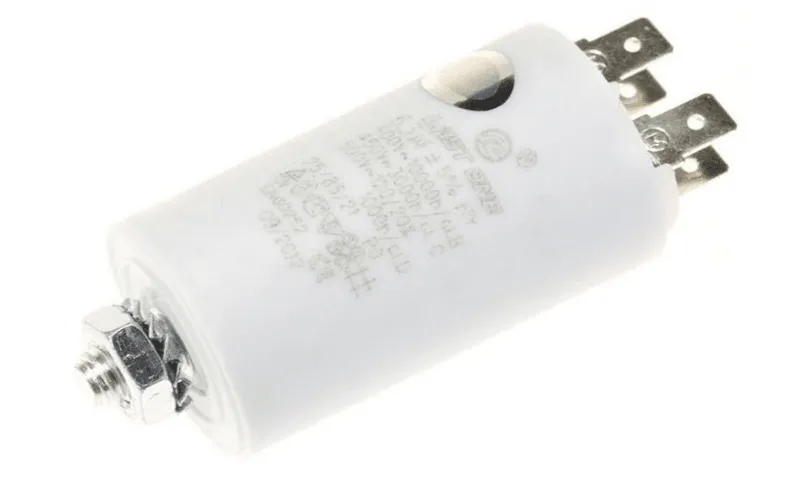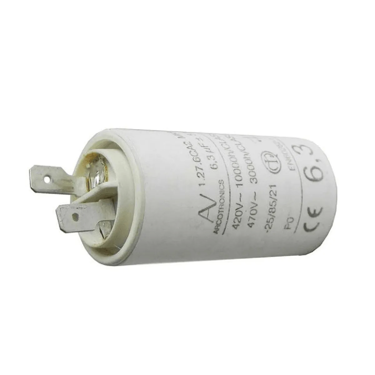 - Capacité : 6,3 µF ; tension nominale 470 V (400 V en fonctionnement)