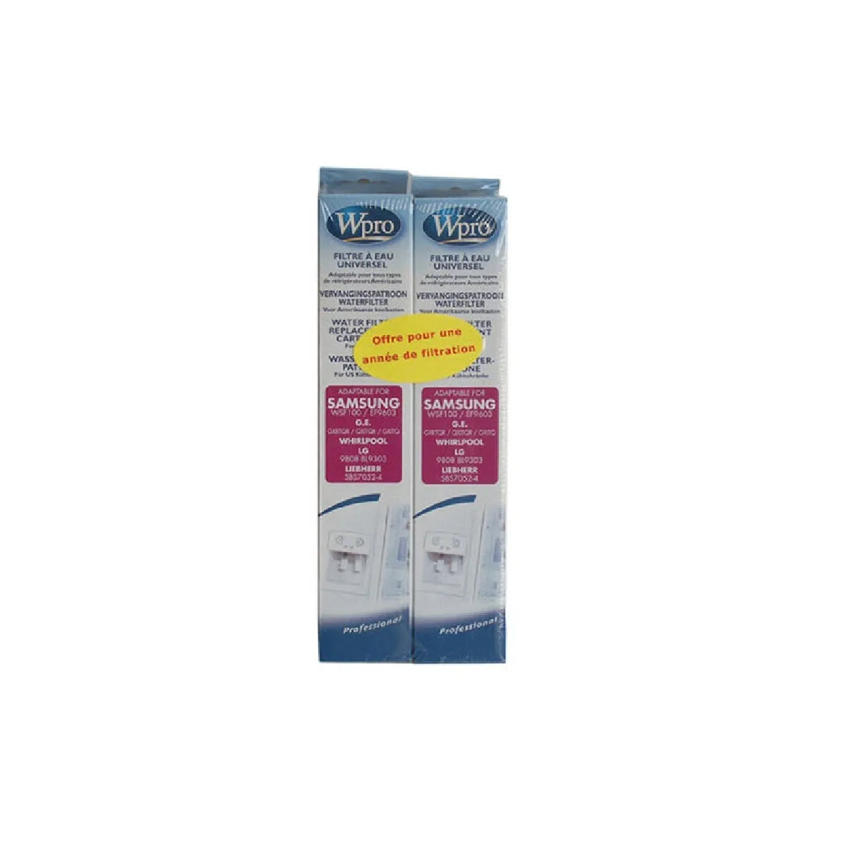 Filtre pour réfrigérateur - Lot de 2 USC100/SMS200 - Réf. WSF100/EF9603 - Compatible Scholtes C3656 - Matériau plastique