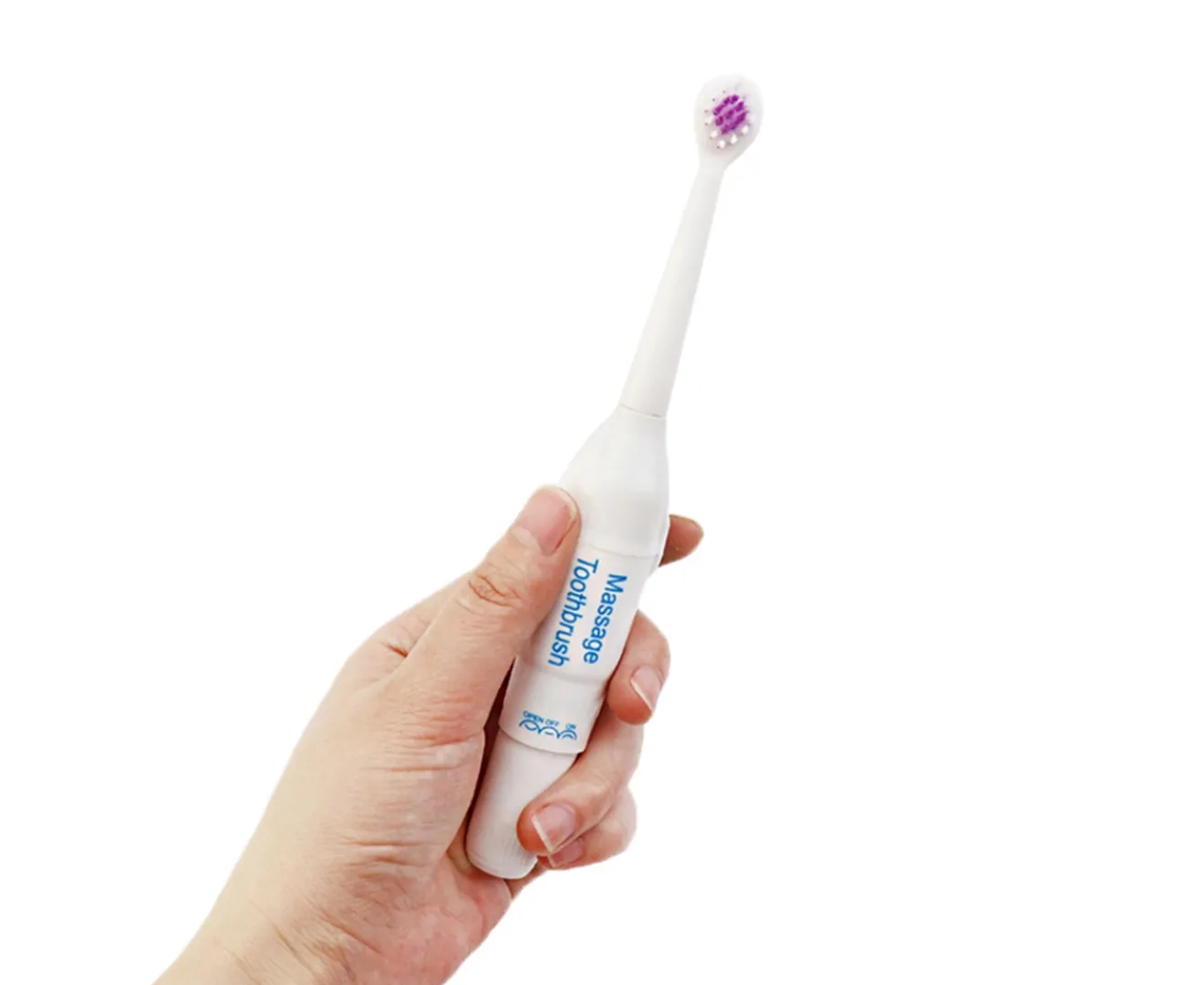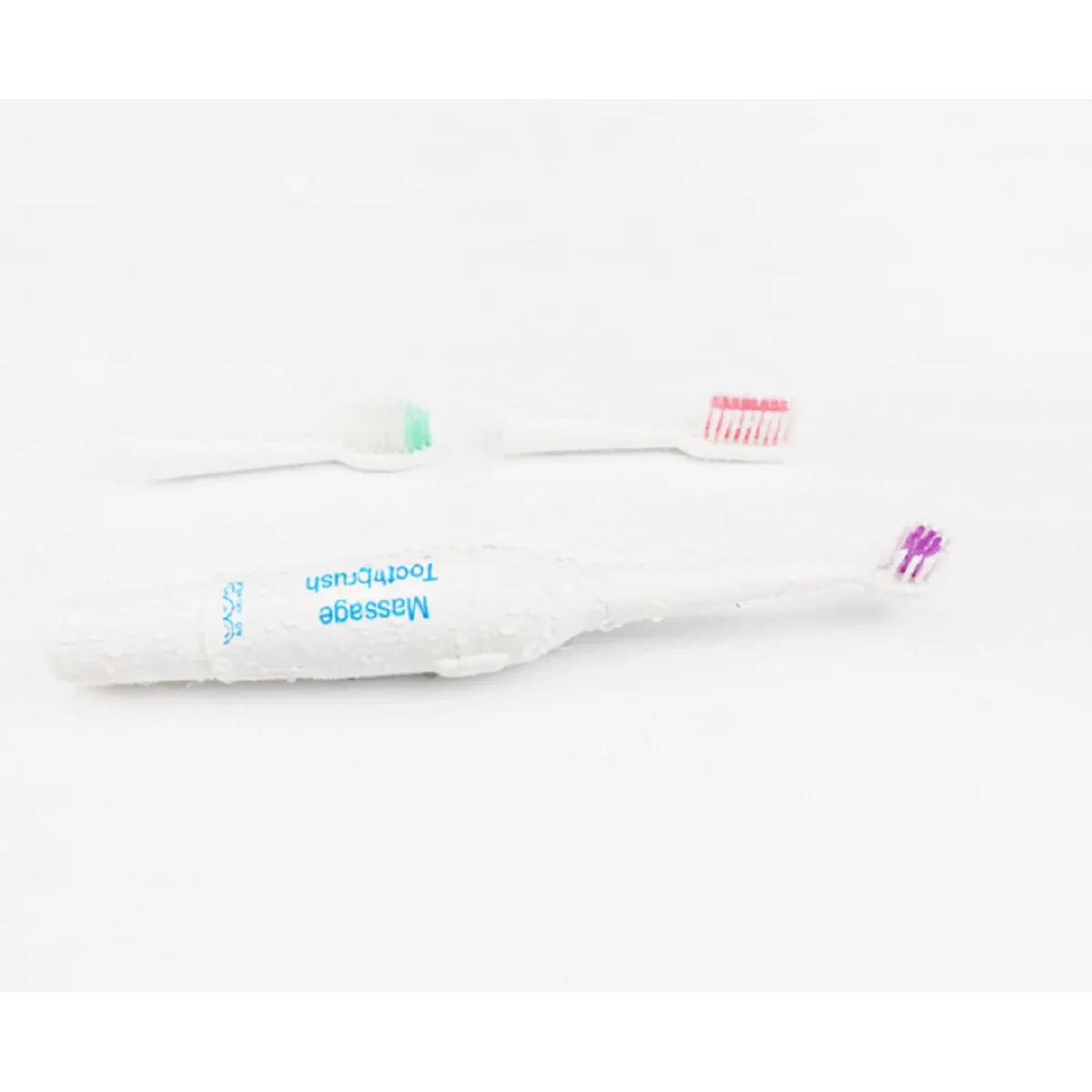 Brosse à dents électrique - 2 têtes de remplacement - Sans batterie - Bouton poussoir - Alimentation pile AA - Corps en plastique