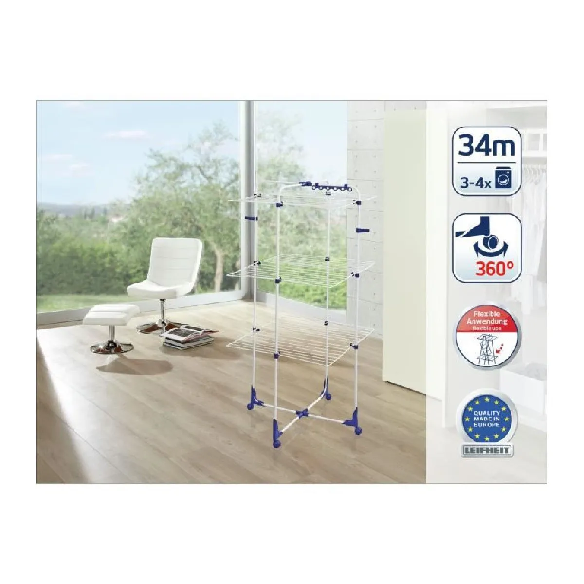 Séchoir à linge tour 34m - 81455 - Classic Tower 340 - LEIFHEIT |