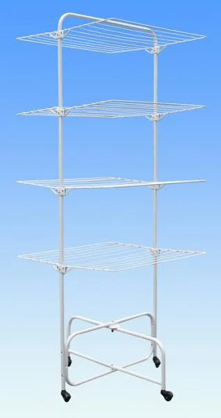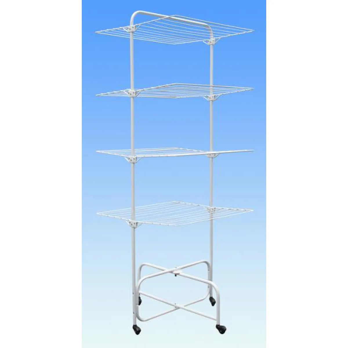 Étendoir sur roulettes - Acier plastifié blanc - 4 niveaux - Tubes Ø16 mm - Structure tour - Déplaçable sur roulettes