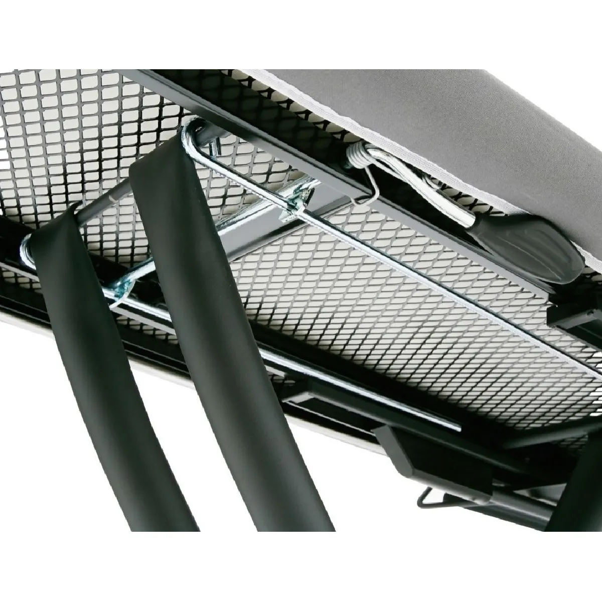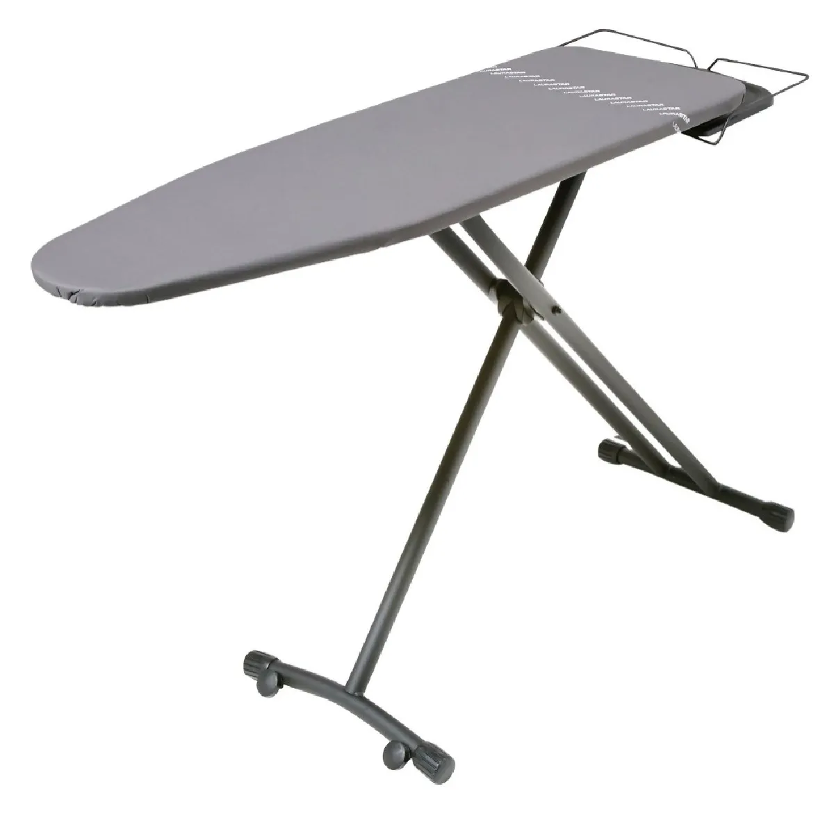 La grande surface de 125 x 42 cm facilite le repassage de chemises, pantalons et linges volumineux, tout en offrant un plateau ergonomique pensé pour une posture confortable. L'ensemble reste stable et simple à manipuler grâce à sa structure légère de 9 kg avec système de fermeture sécurisé. La housse en coton de couleur gris foncé favorise une glisse régulière et une diffusion homogène de la chaleur, pour un résultat soigné sur la plupart des centrales vapeur. Le repose-fer intégré garde l'appareil à portée de main et libère le plateau entre deux passages, pour un rythme de travail fluide.
