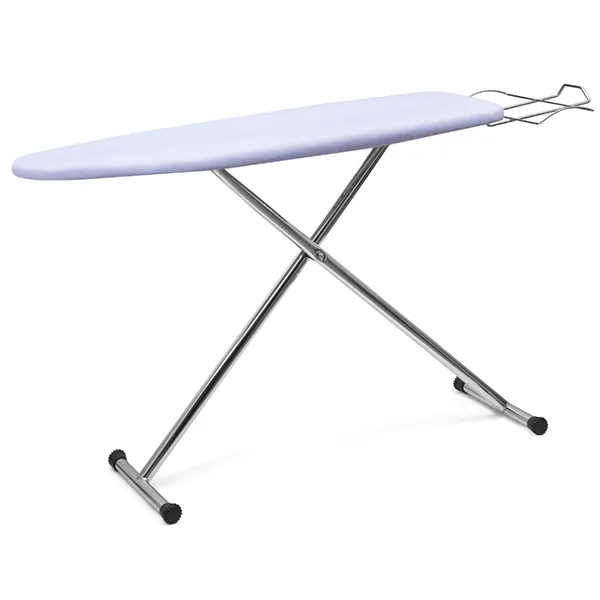 Table à repasser coulissante - Repose-fer coulissant - Plateau ajouré - Anticorrosion - Hauteur réglable 8 positions - Embouts réglables pour stabilité - Pieds chromés - Housse molletonnée