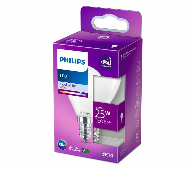 Philips Ampoule LED sphérique E14 - Blanc froid 4000K |