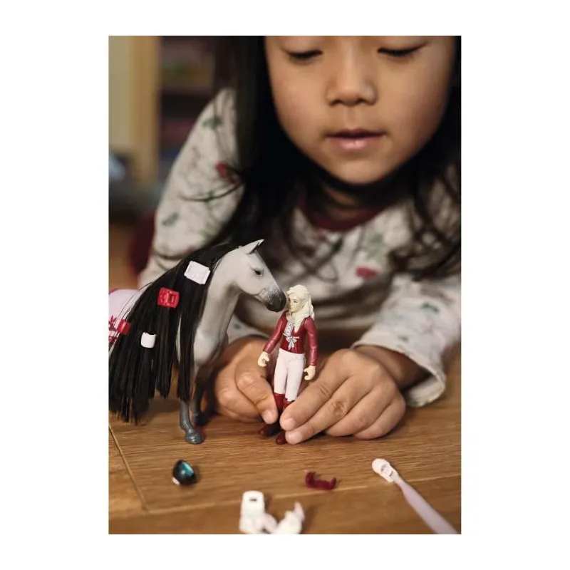 La thématique Sofia et Dusty s'intègre facilement à une collection existante, tout en servant de base pour un univers équestre. La taille pratique simplifie le rangement et le transport, ce qui favorise des jeux nomades et des histoires variées à la maison comme en déplacement. Les images fournies aident à présenter l'ensemble et à inspirer des scénarios de soin, d'entraînement et d'aventure en lien avec la gamme. L'ensemble est pensé pour des sessions de jeu répétées, avec une conception robuste et un style fidèle à la série Sofia's Beauties.