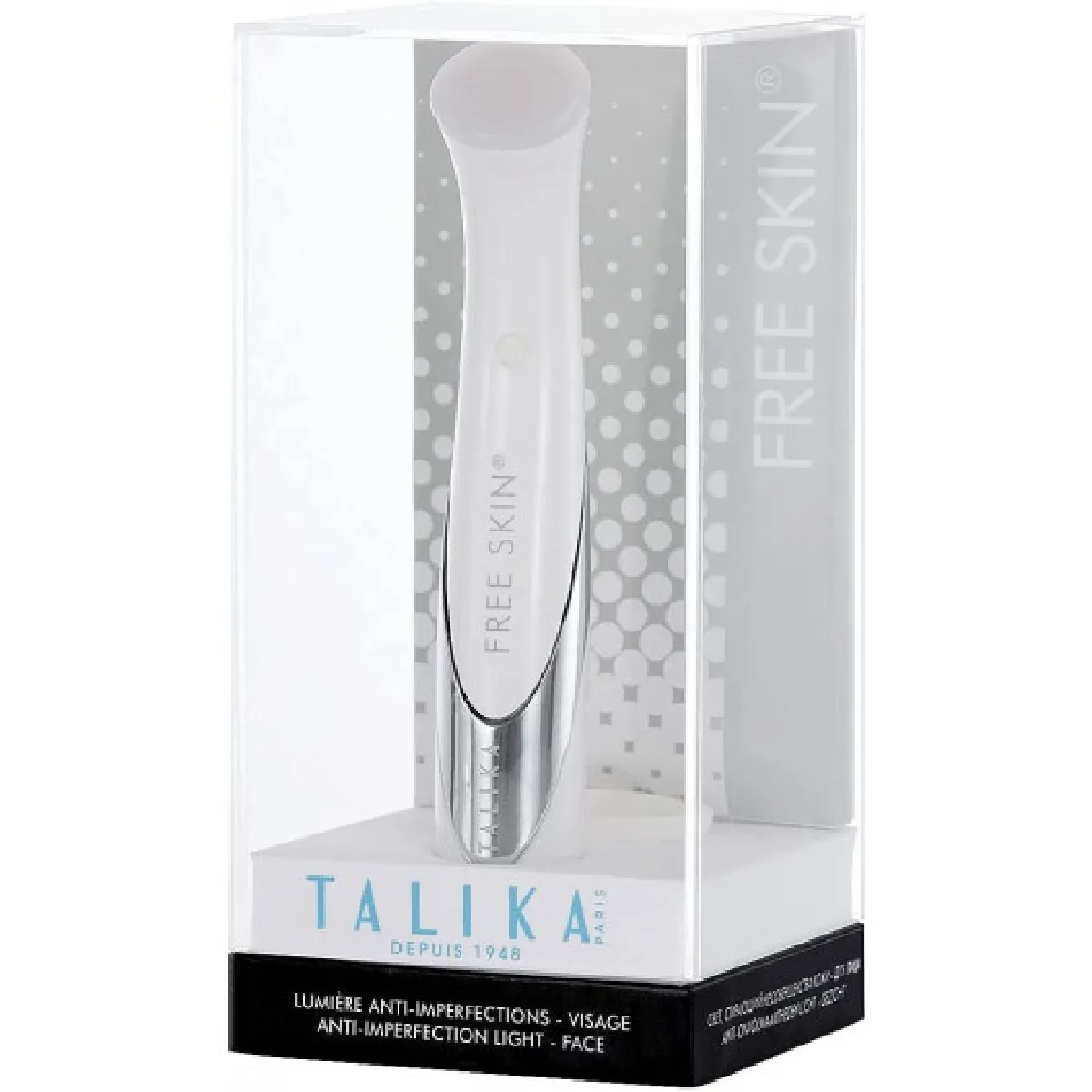 La thérapie par lumière cible les zones à problèmes pour une routine simple et régulière. Talika Free Skin associe 6 LED rouges et 3 LED bleues afin d'agir sur différents types d'imperfections du visage. Sa conception ergonomique, compacte facilite la prise en main et le passage sur les zones à traiter. L'alimentation par pile AA pratique en déplacement permet une utilisation à la maison, au bureau ou en voyage. Avec son arrêt automatique après 1 minute, l'appareil aide à rythmer des séances courtes et répétables, intégrables au quotidien sans contrainte, pour viser un teint plus homogène au fil des utilisations.